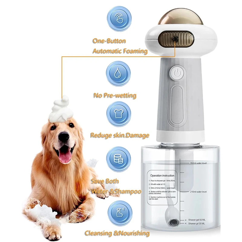 Al agregar la cantidad adecuada de detergente y agua, este dispensador puede producir una gran cantidad de espuma, lo que garantiza una experiencia de limpieza profunda y suave para sus mascotas y su hogar.