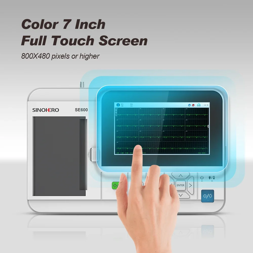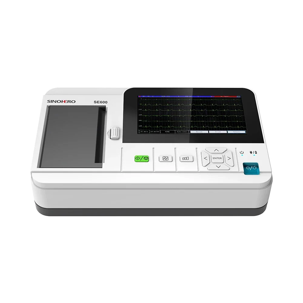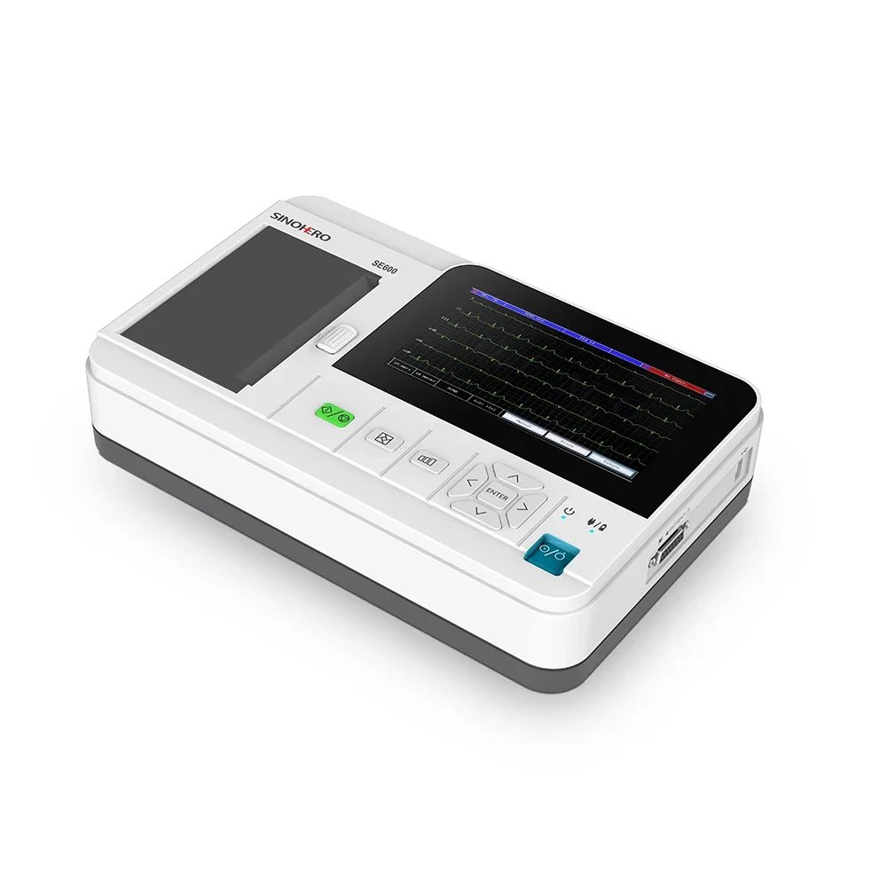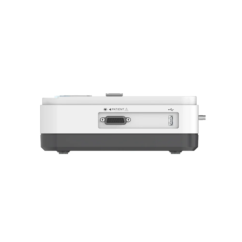 ECG600G es un electrocardiógrafo de 6 canales que puede recopilar señales de ECG de 12 derivaciones e imprimir formas de onda mediante el sistema de impresión térmica.Pantalla a color completamente táctil de 7 pulgadas, presenta grabación y visualización de la forma de onda de ECG en modo AUTO/Manual, medición y diagnóstico automático de los parámetros de forma de onda de ECG, solicitando "Derivación apagada" y "Falta de papel", interfaz multilingüe, bases de datos de casos gestión.