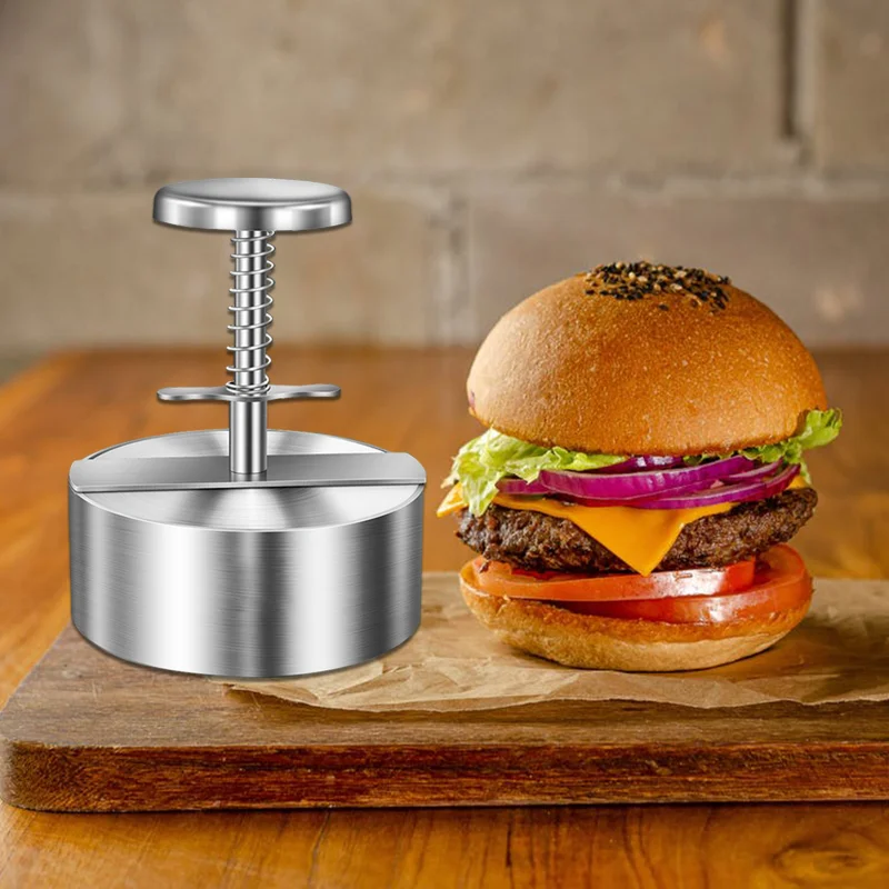��【ACERO INOXIDABLE 304】 La prensa para hamburguesas está fabricada con acero inoxidable 304 de alta resistencia apto para uso alimentario, que es duradero para uso a largo plazo.Esta herramienta de cocina produce hamburguesas de 4,2”.