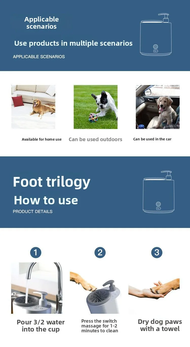Máquina para lavar los pies de perro, artefacto eléctrico automático sin limpiar, taza de limpieza de pies, gato, mascota, peluche, garra sin puerta