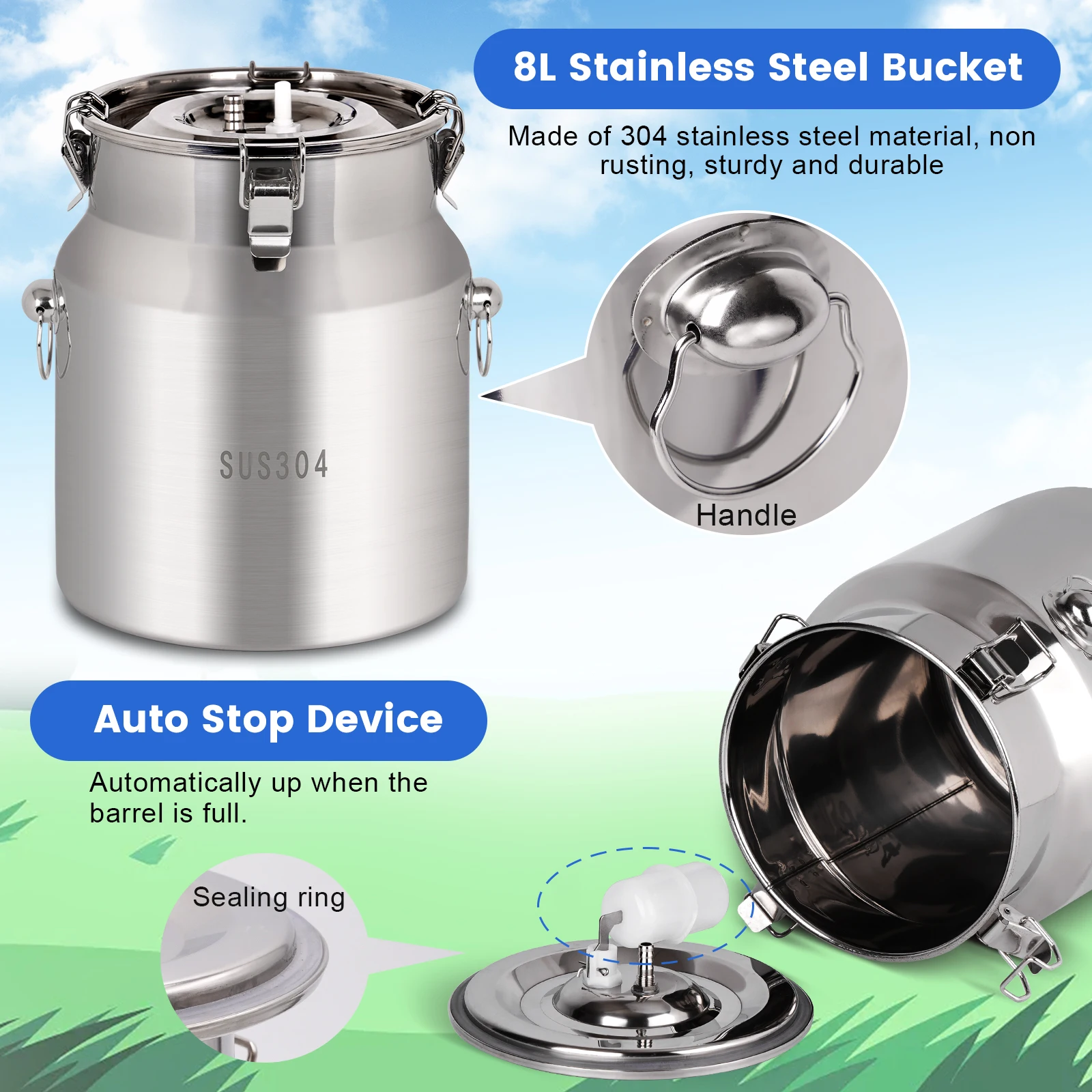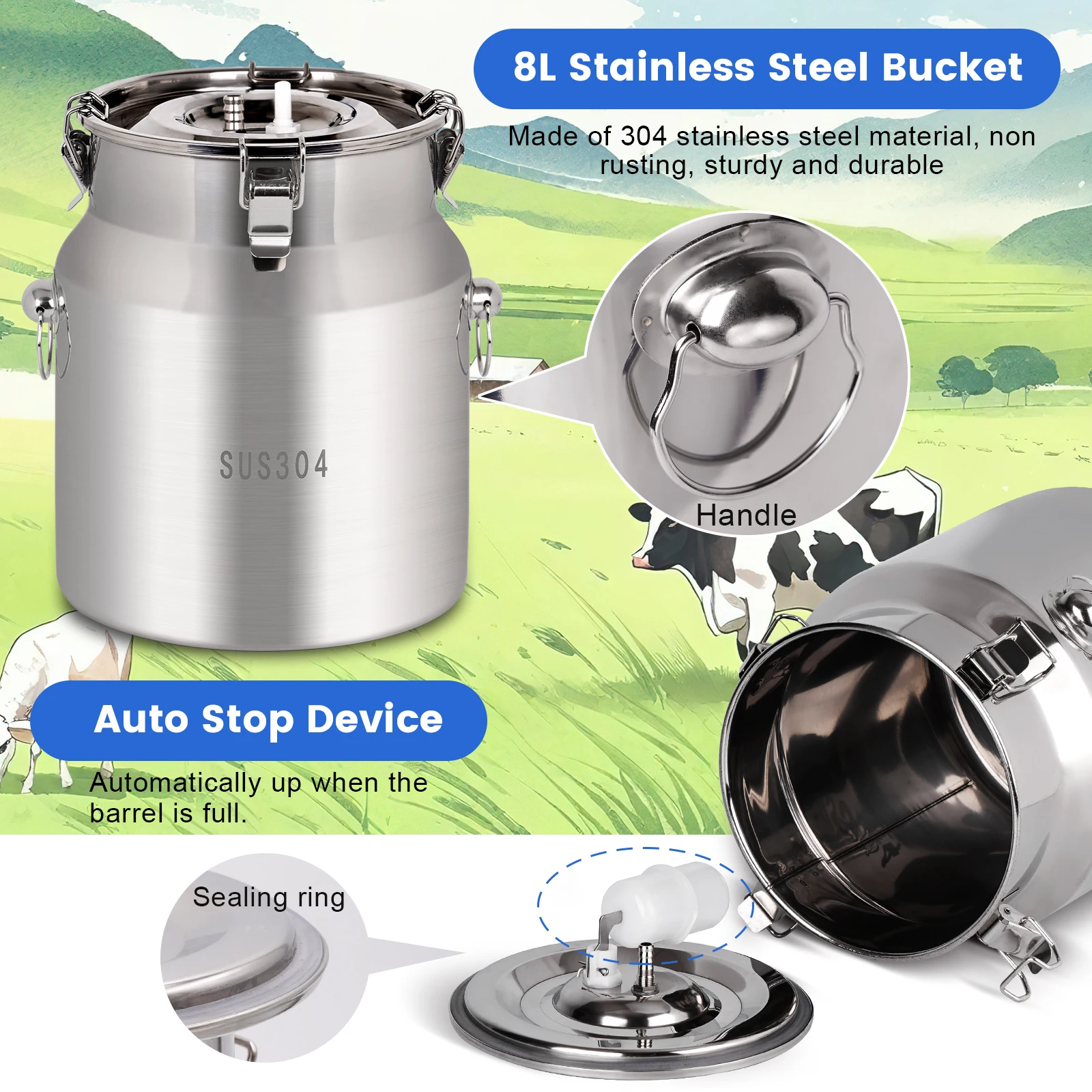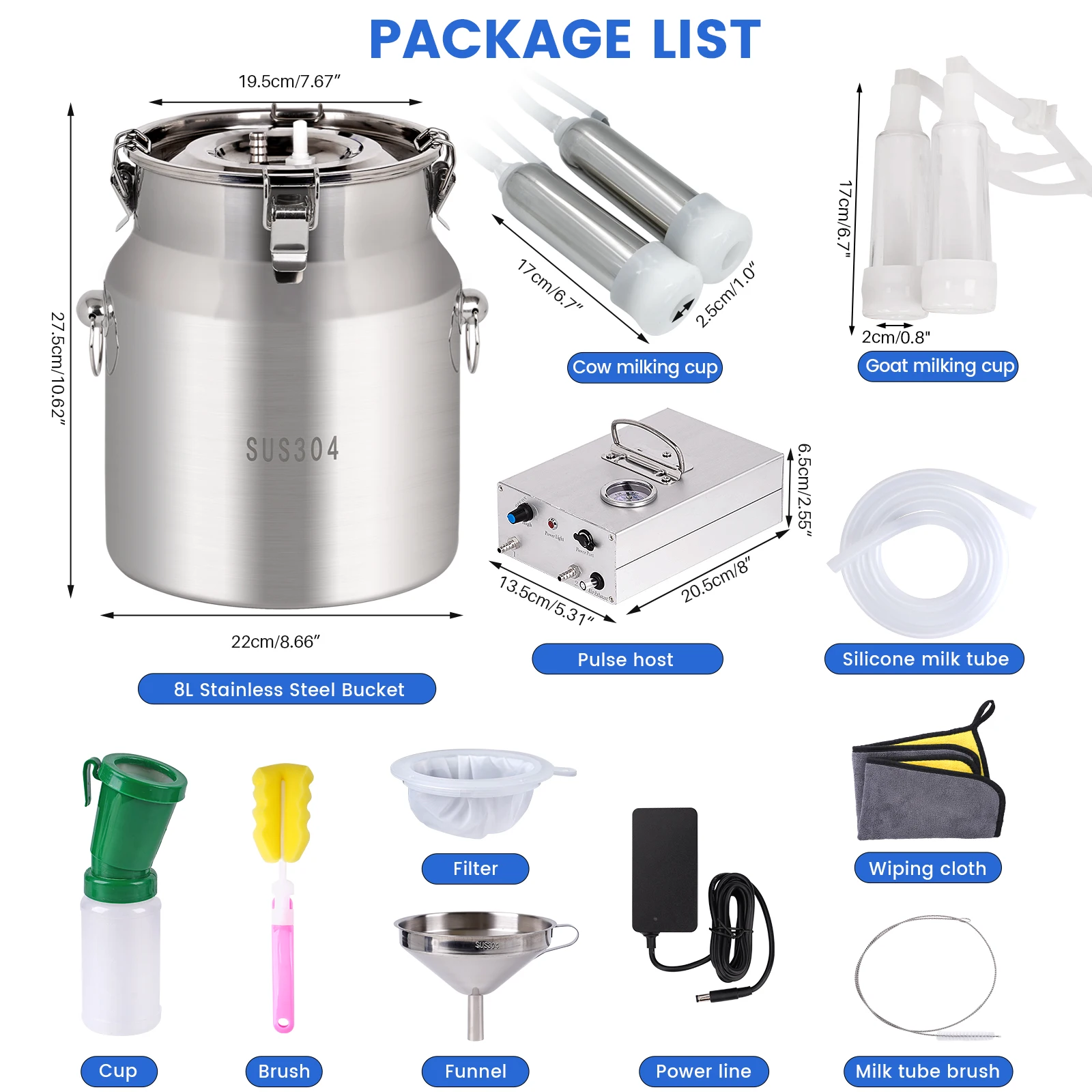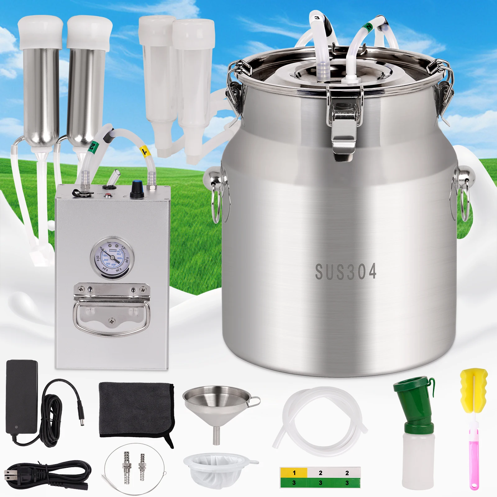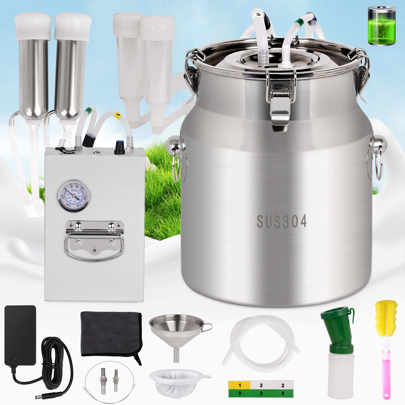 Máquina de ordeño de cabras eléctrica de 8L, bomba de succión de pulsación de vacío eléctrica recargable, máquina ordeñadora para granjas de ovejas