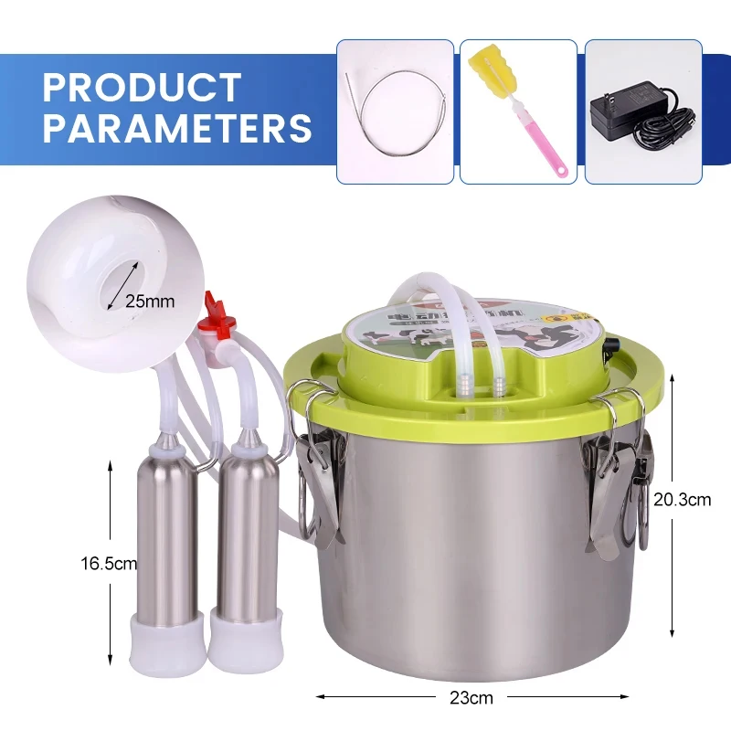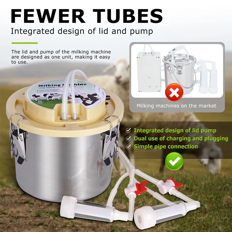Máquina de ordeño eléctrica integrada para ovejas y vacas de 8L, ordeño automático de acero inoxidable, extractor de leche doméstico, suministros agrícolas