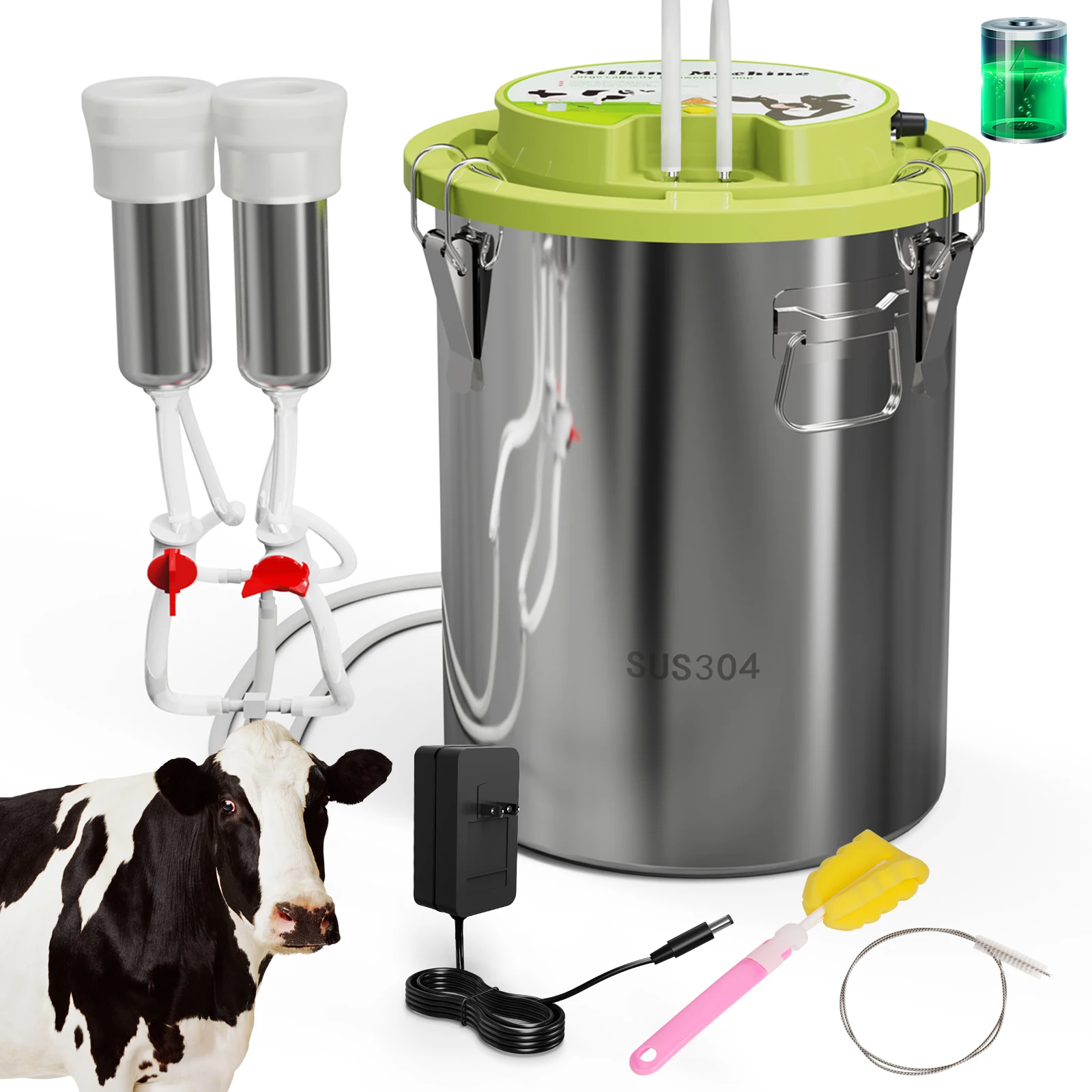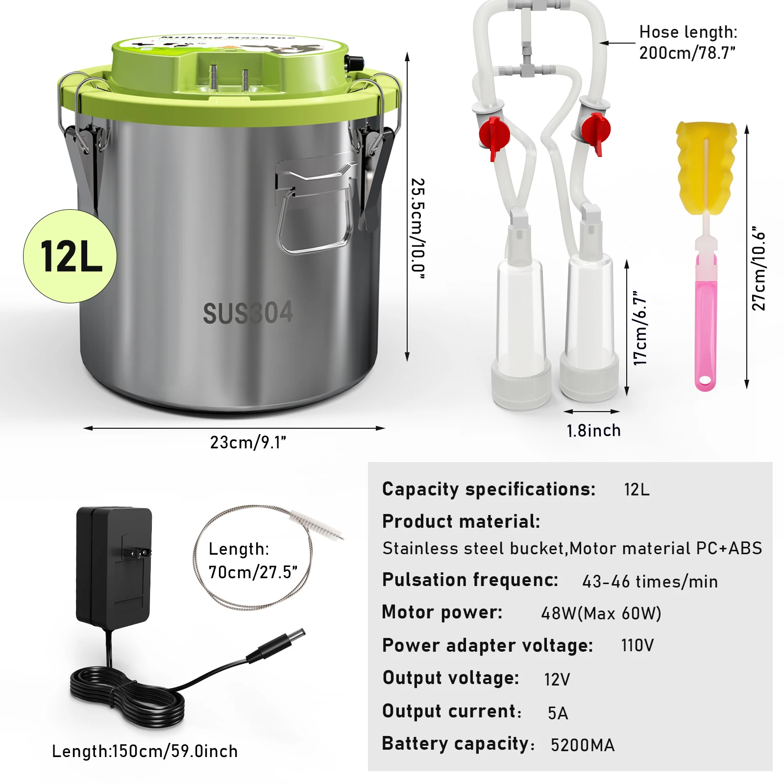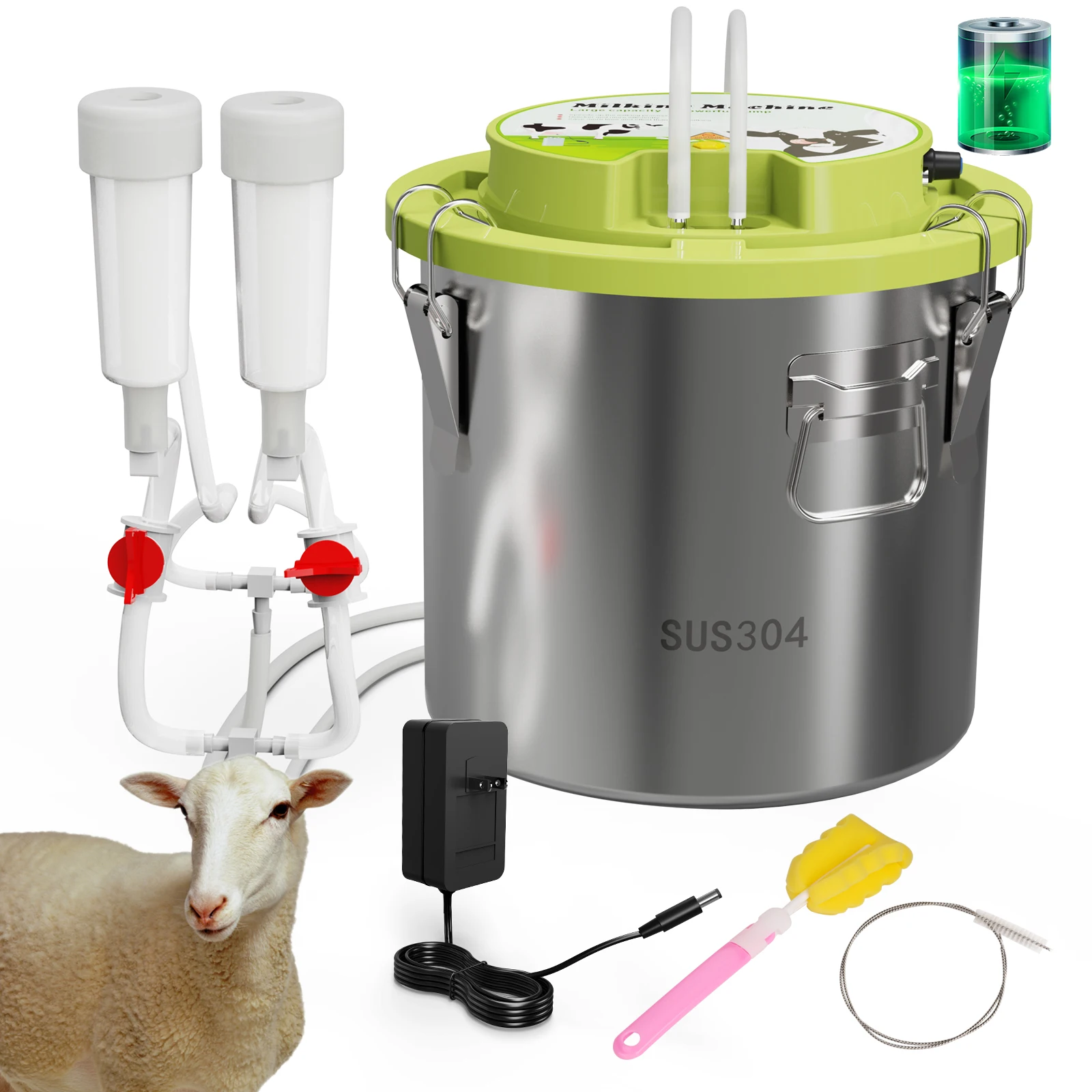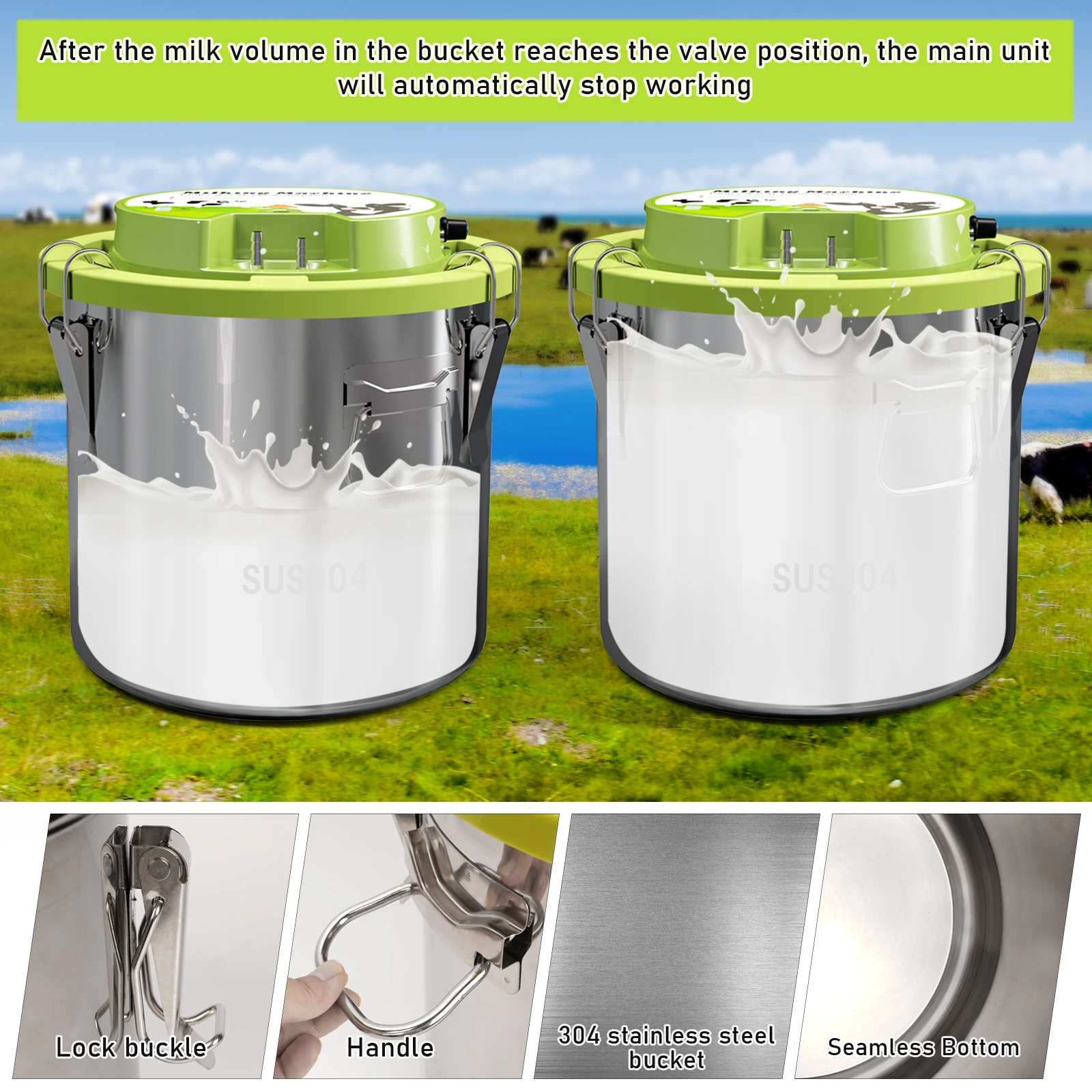 Máquina de ordeño integrada eléctrica para ovejas y vacas de 12L/16L, máquina de ordeño recargable y enchufable de acero inoxidable 304 para ganado
