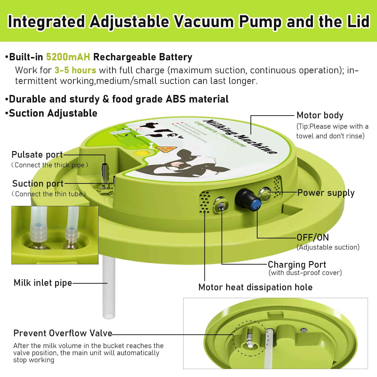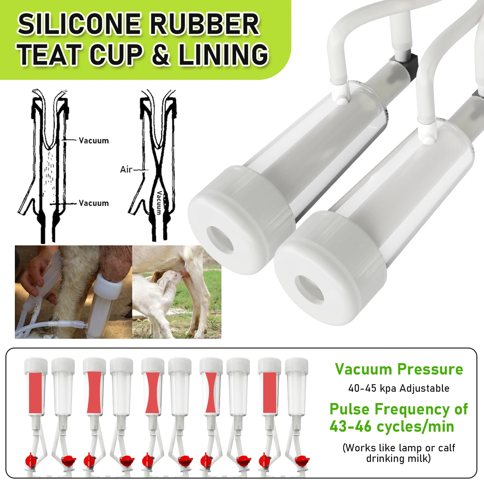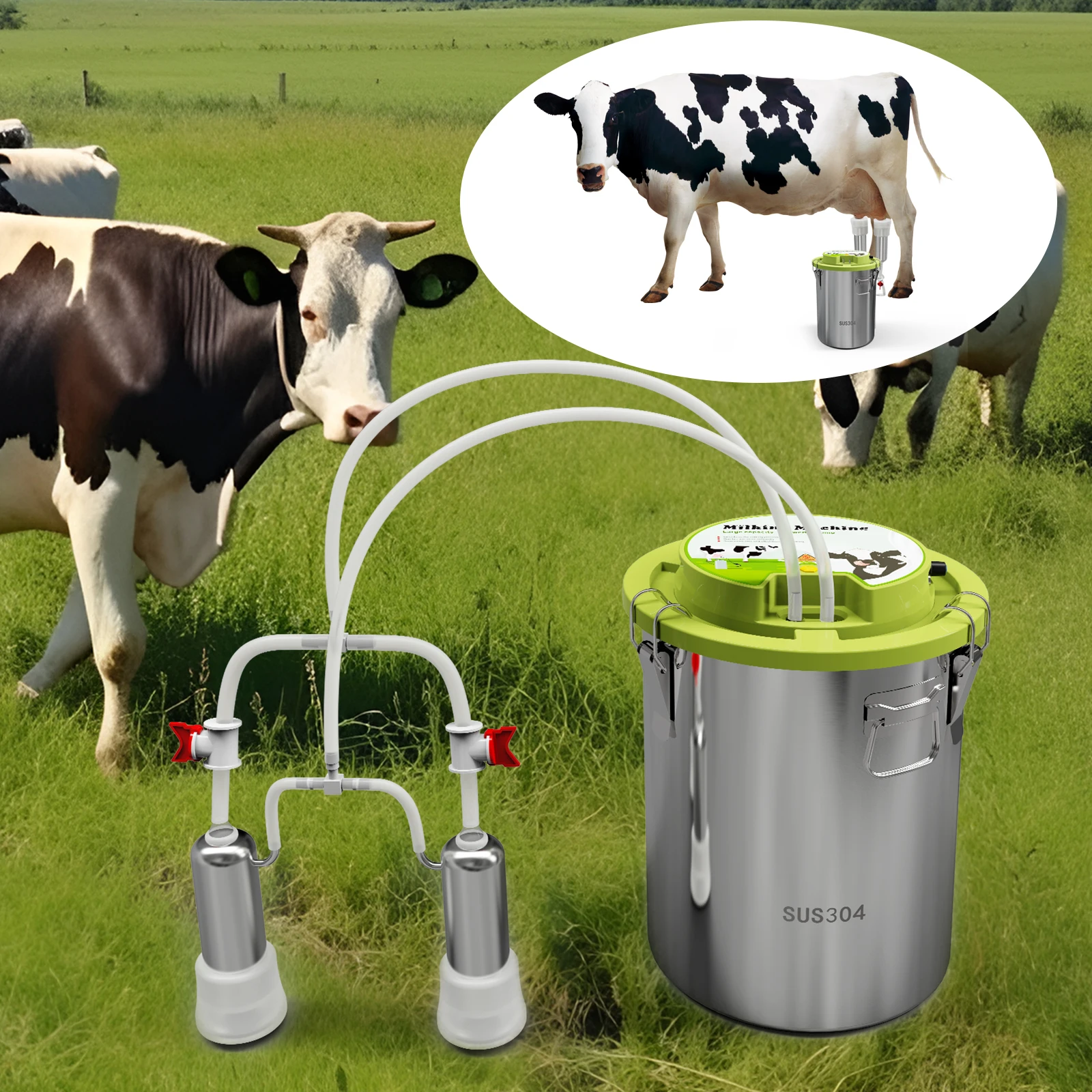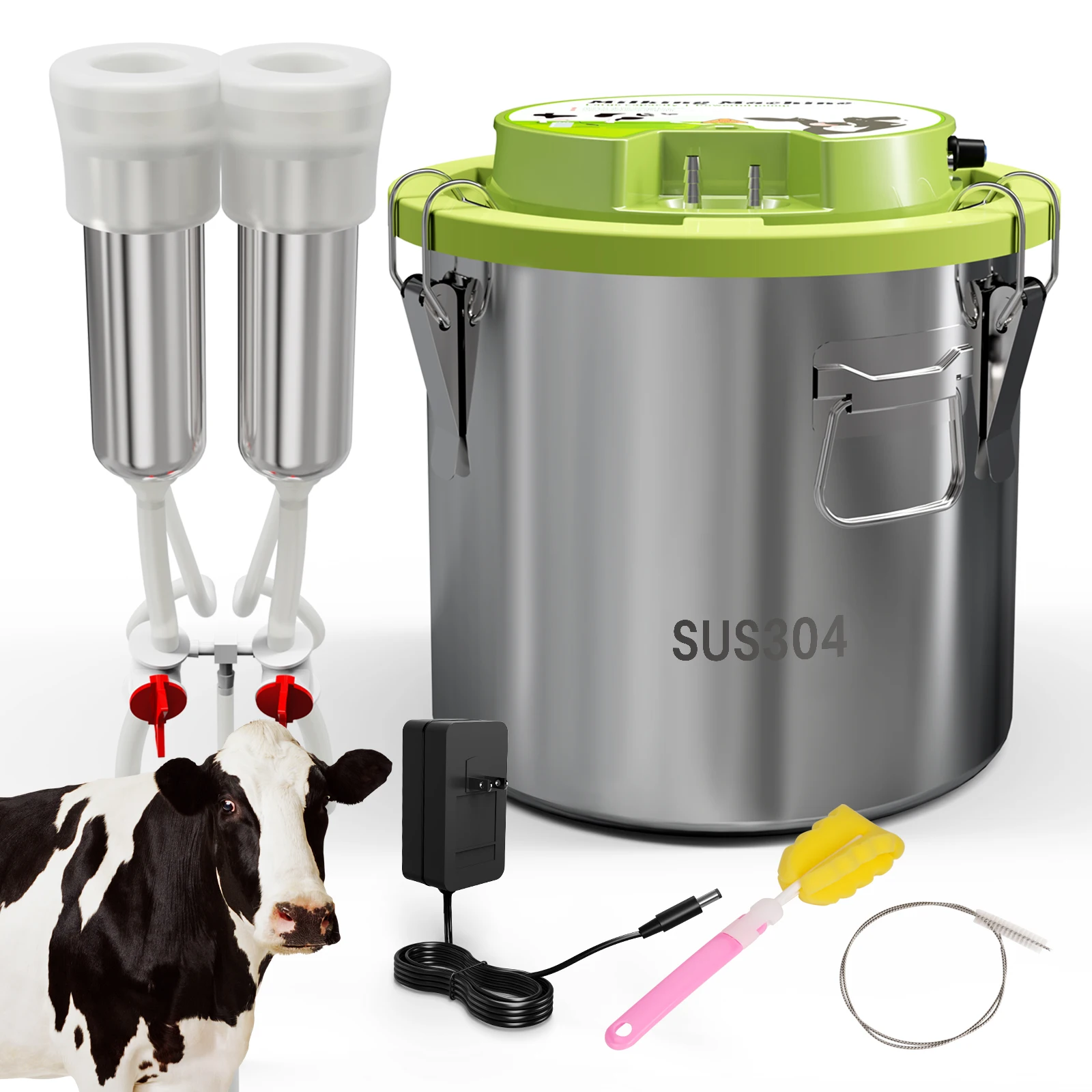 Máquina de ordeño integrada eléctrica para ovejas y vacas de 12L/16L, máquina de ordeño recargable y enchufable de acero inoxidable 304 para ganado