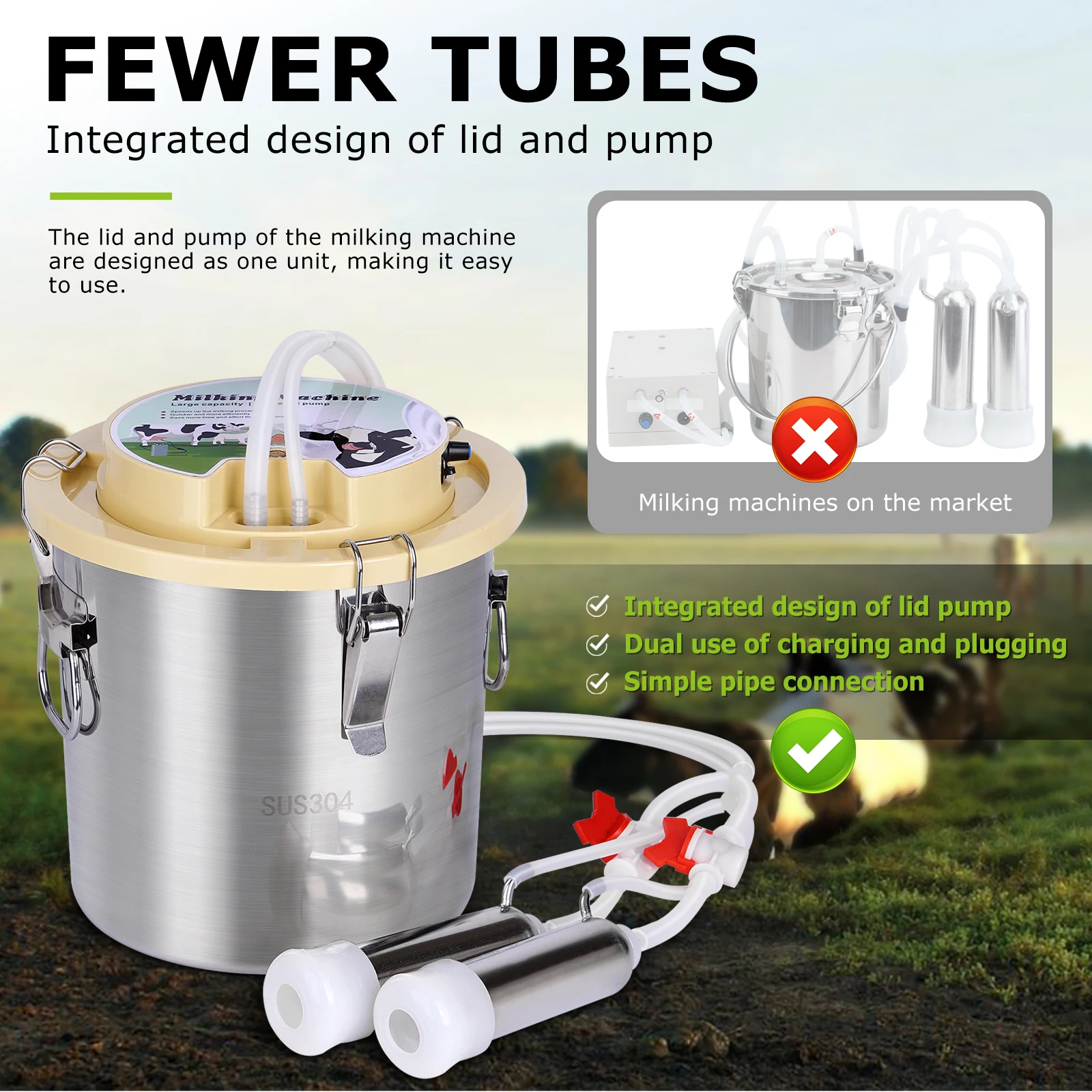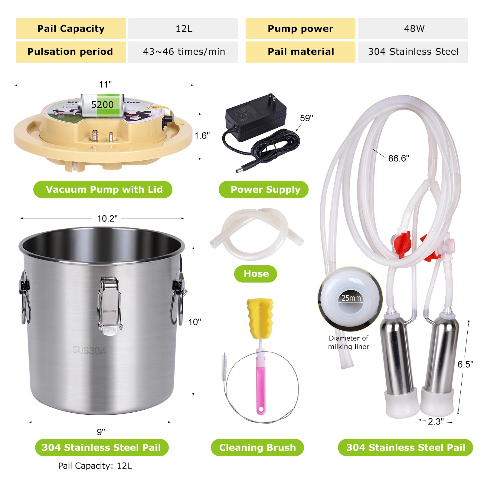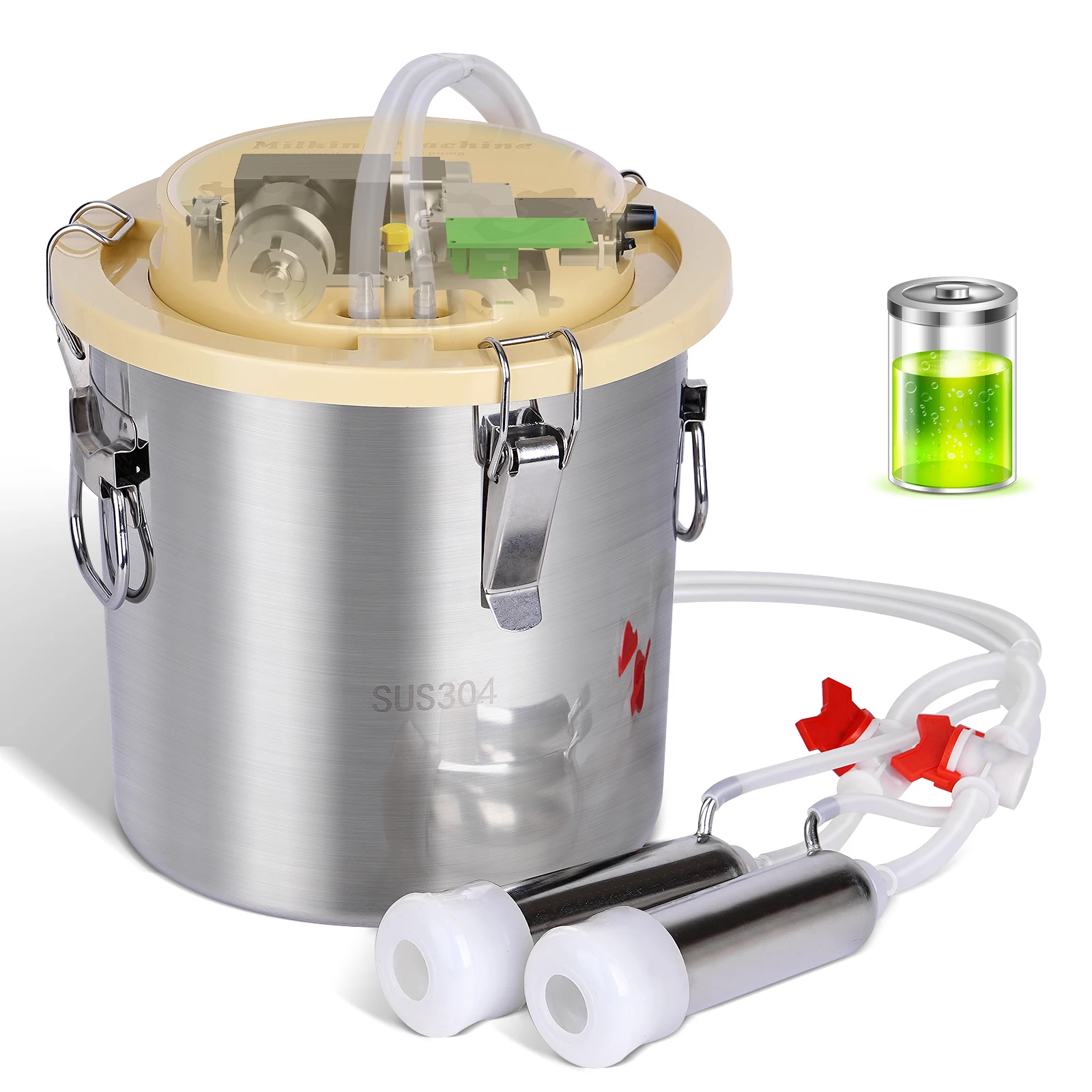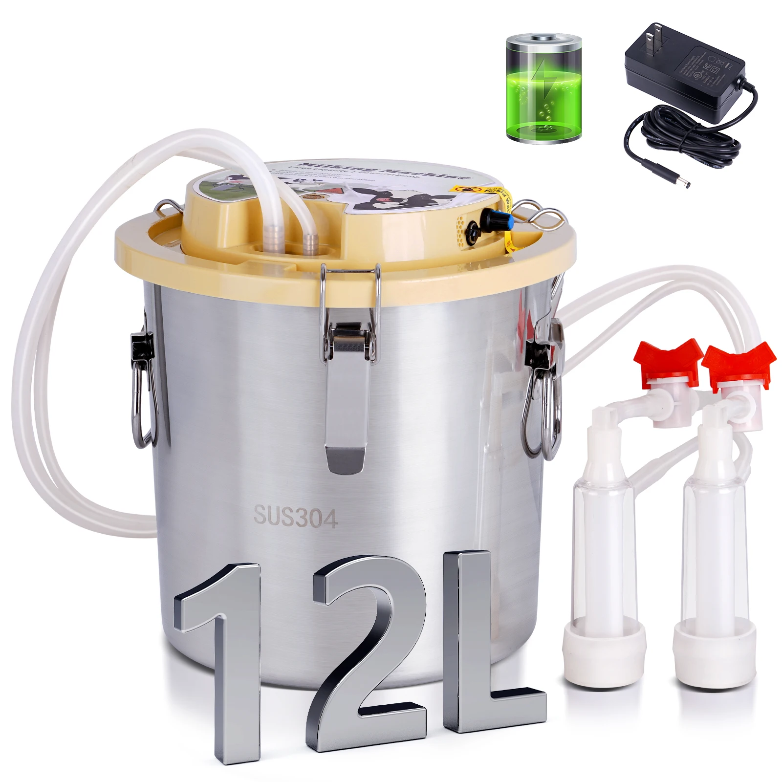 Máquina de ordeño integrada eléctrica para ovejas y vacas de 12L, máquina de ordeño recargable y enchufable de acero inoxidable 304 para ganado