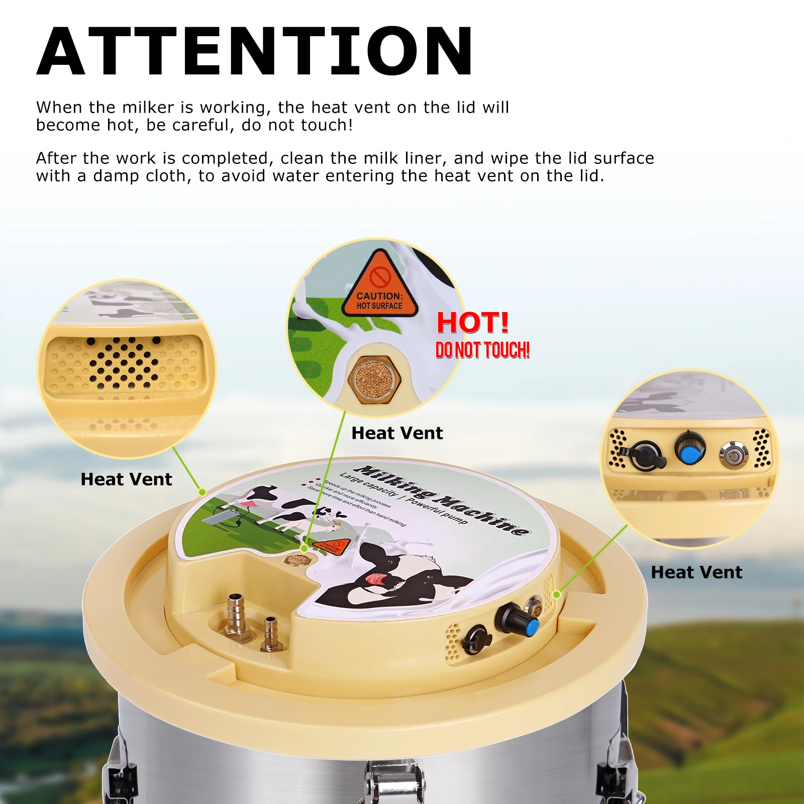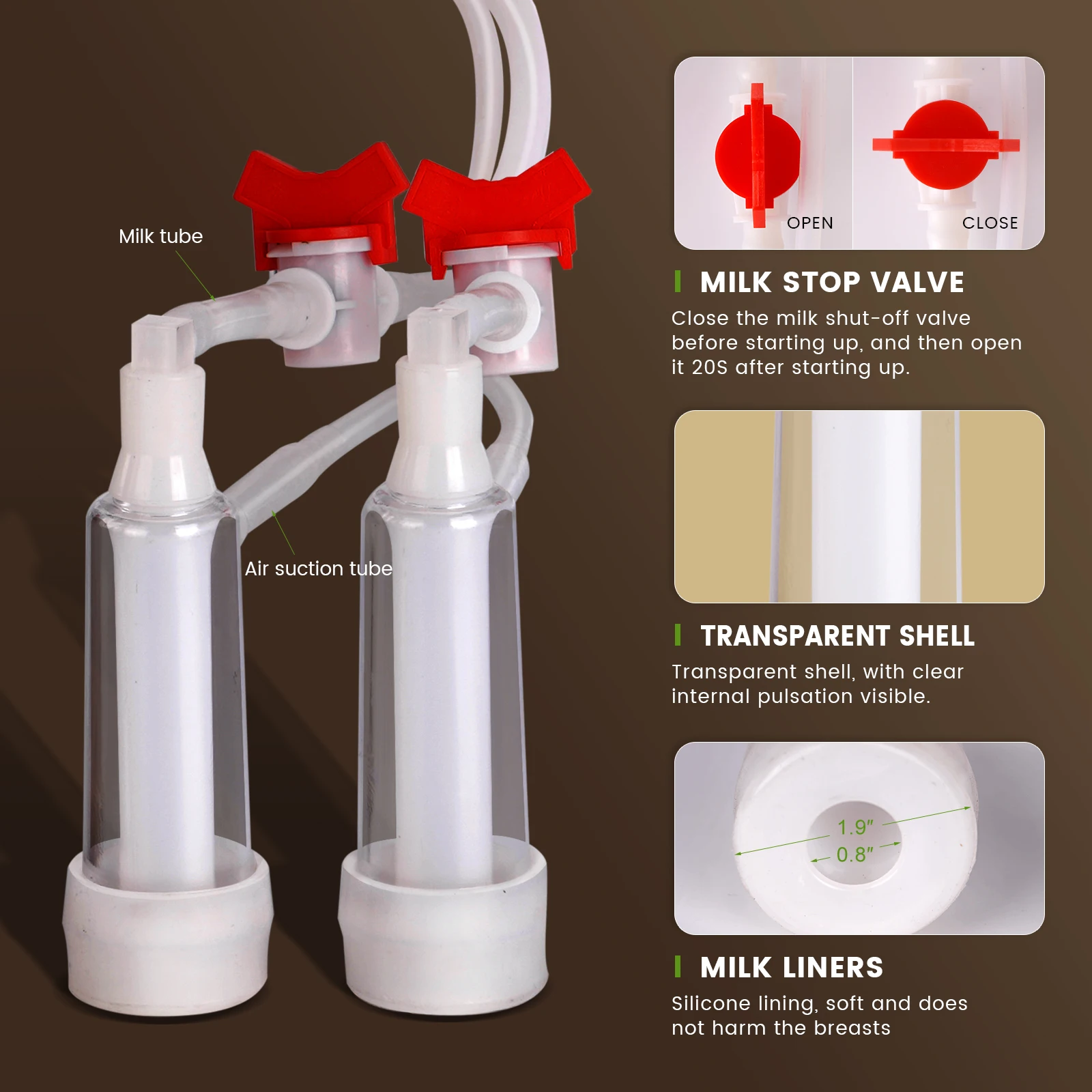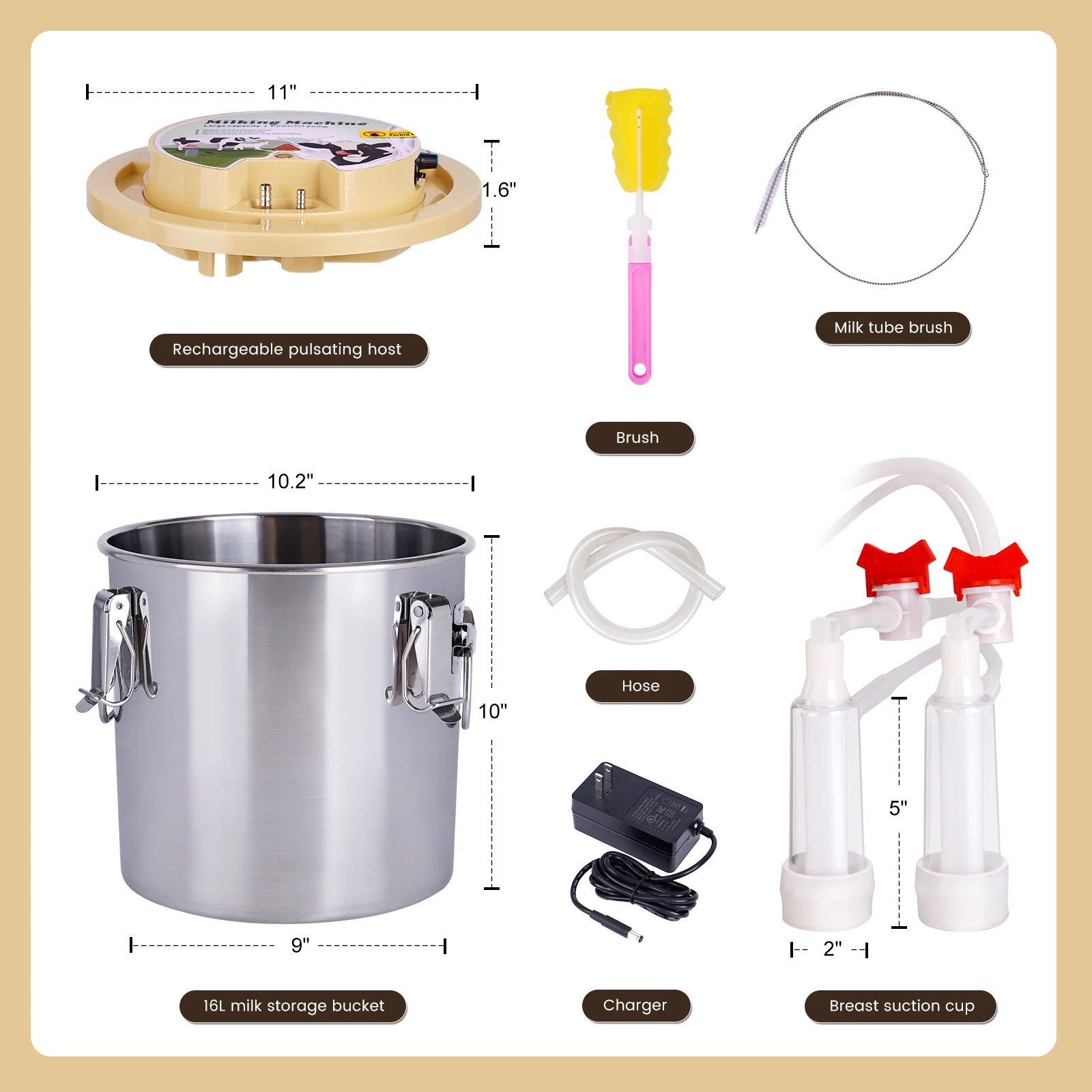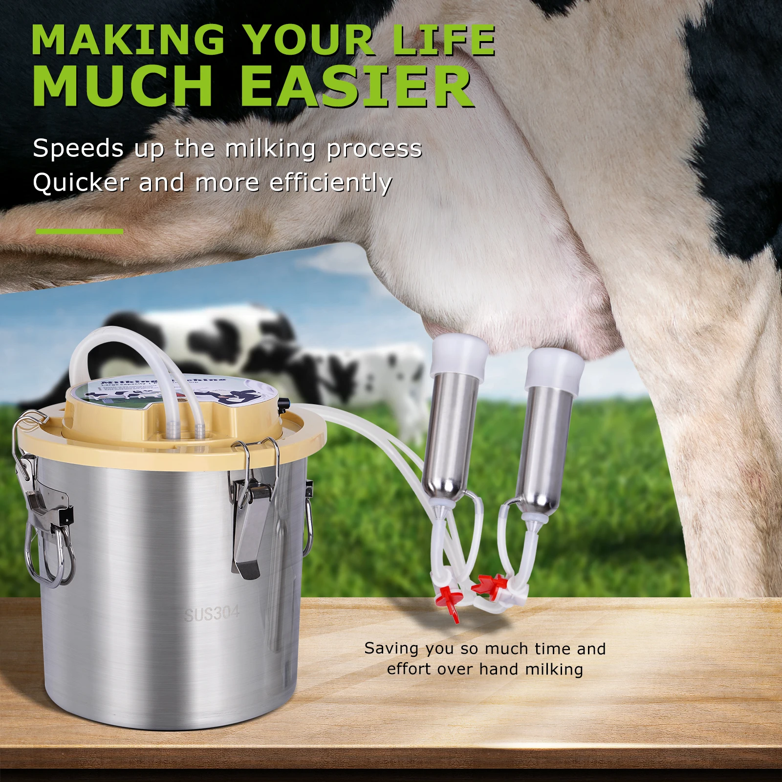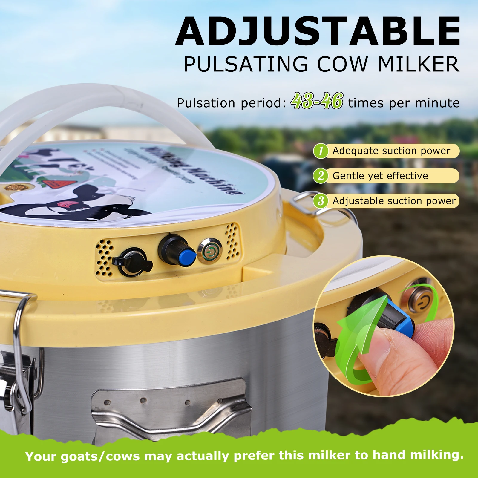 Máquina de ordeño integrada eléctrica para ovejas y vacas de 12L, máquina de ordeño recargable y enchufable de acero inoxidable 304 para ganado