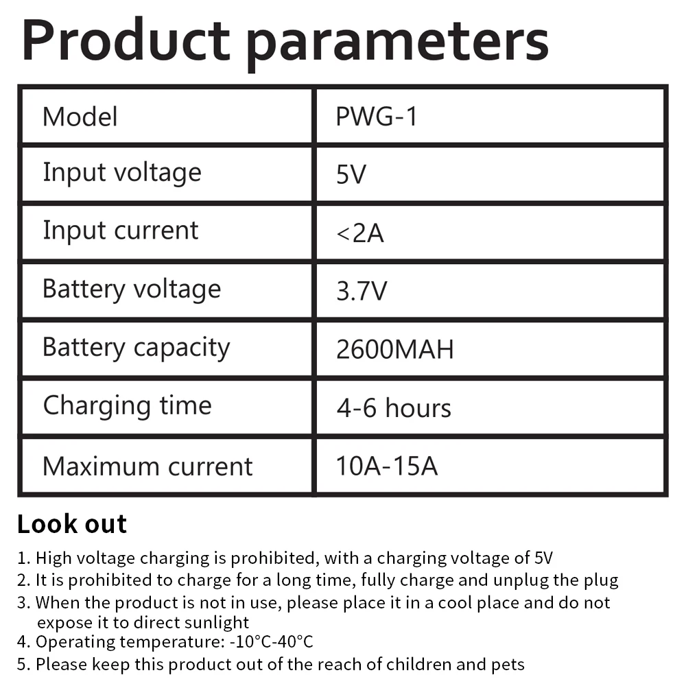 1. La carga de alto voltaje está prohibida y el voltaje de carga es de 5V. Colóquelo en un lugar fresco cuando no esté en uso y no lo exponga al sol.