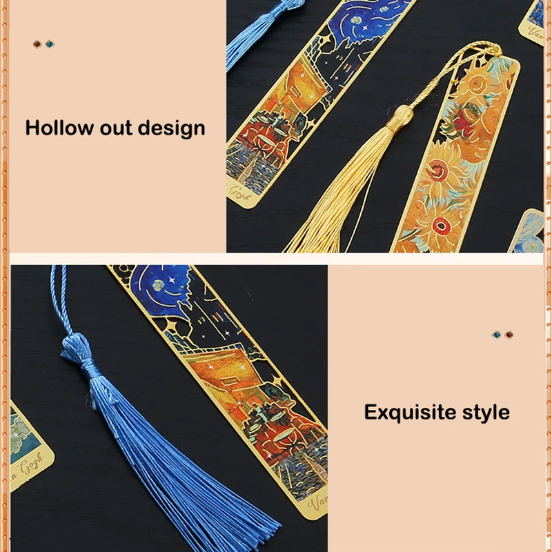 • Estilo bronceado hueco:El estilo bronceado hueco del marcapáginas le da un aspecto único y artístico, lo que lo convierte en una pieza destacada en cualquier estantería para libros.