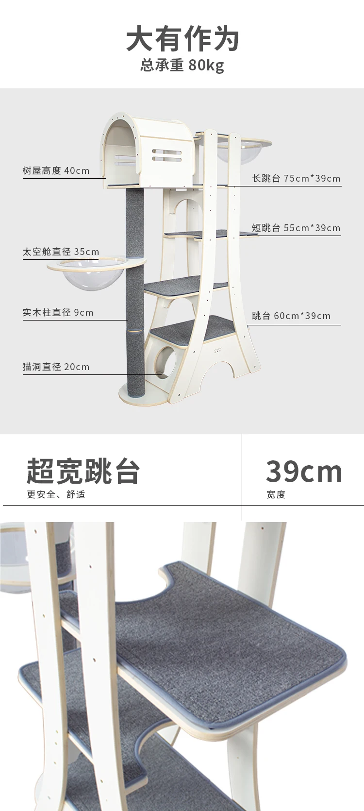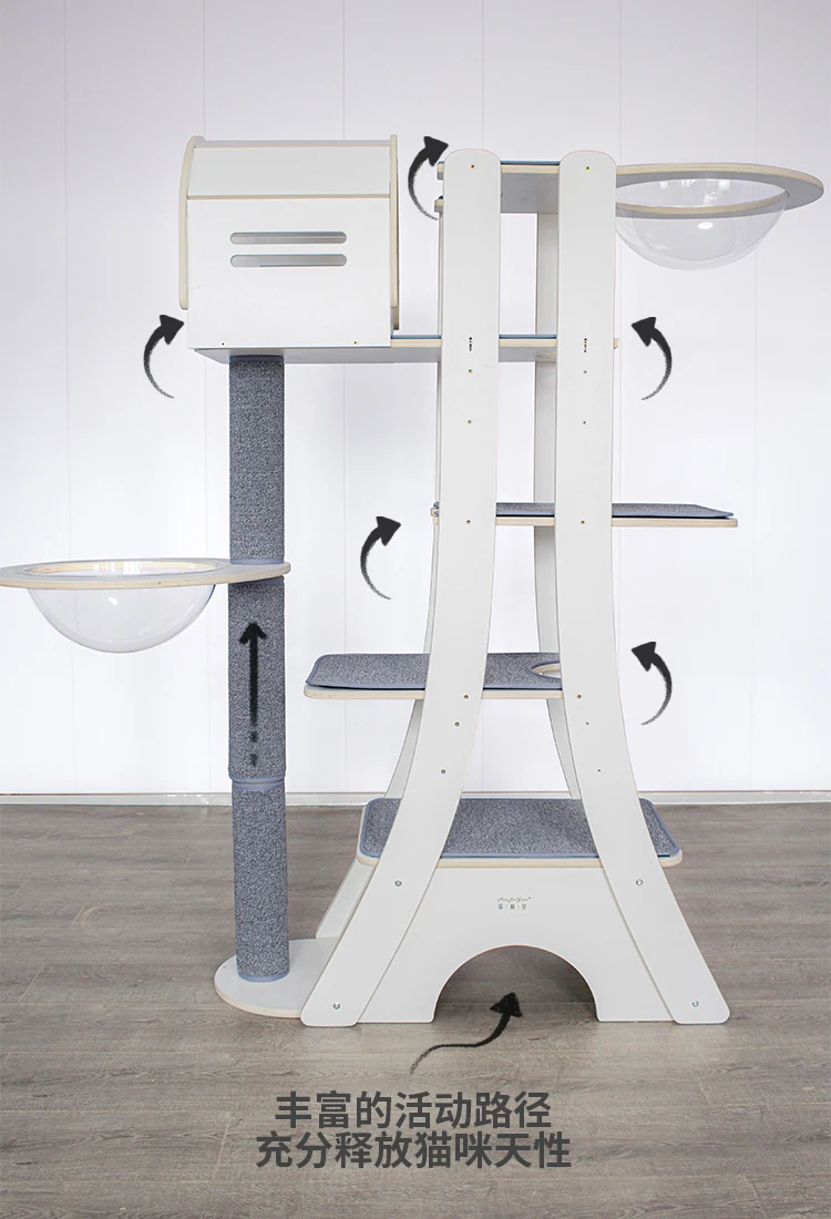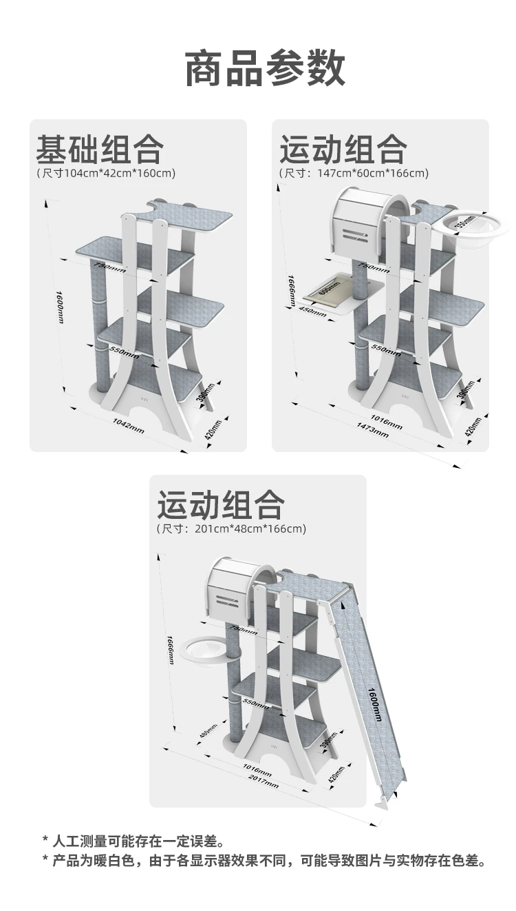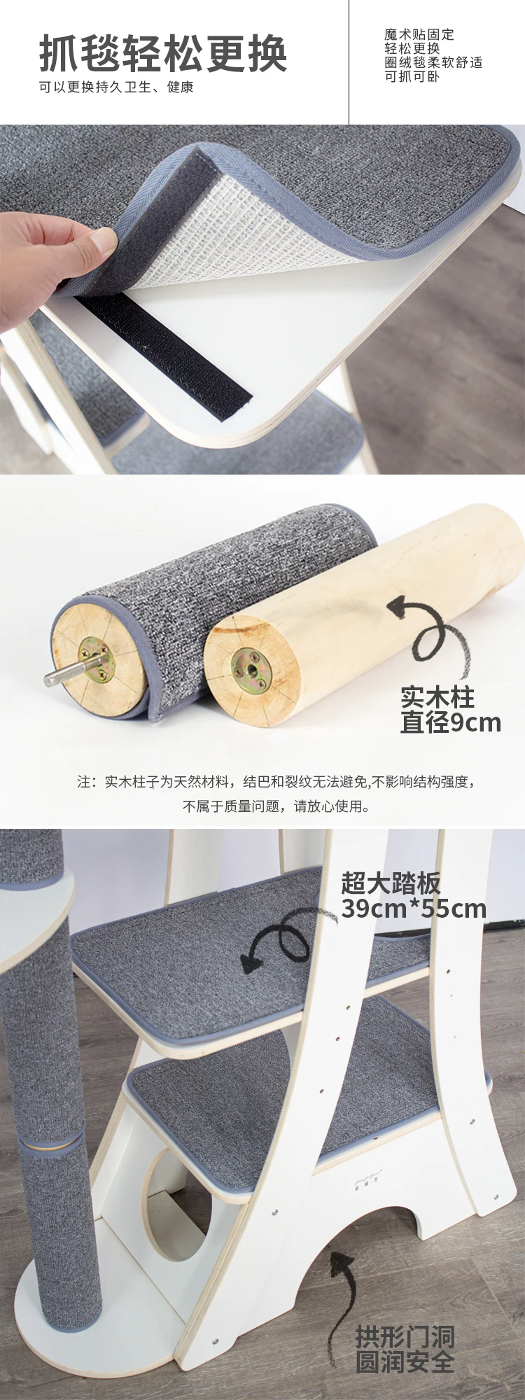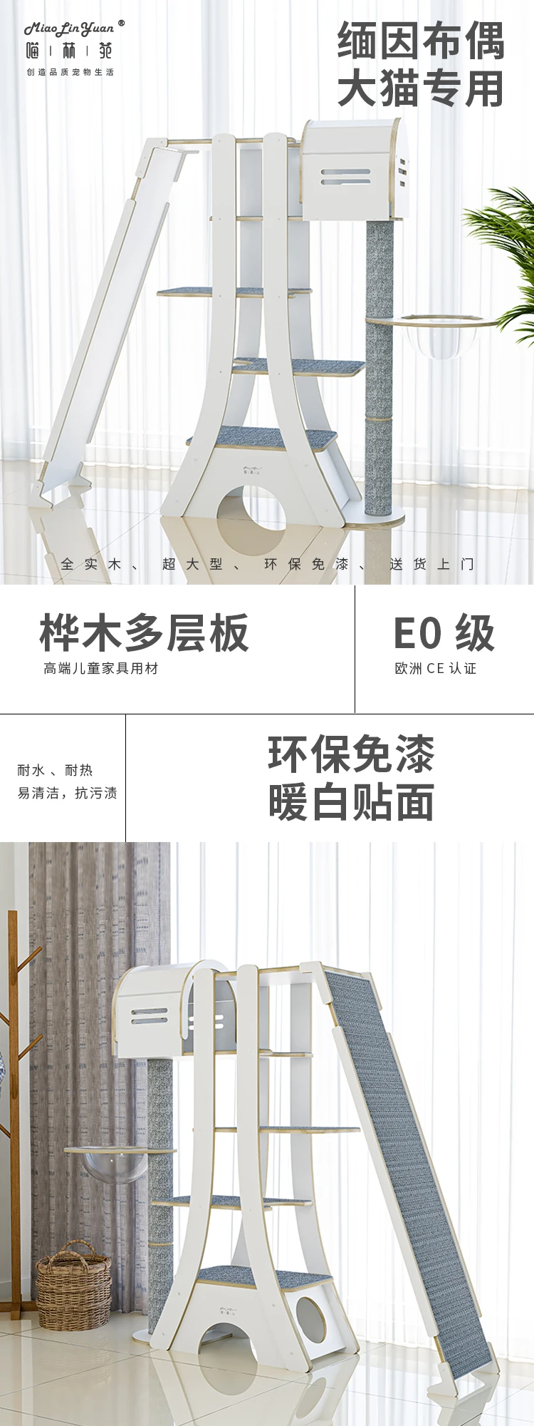 Marco de escalada de gato de madera maciza de lujo grande, arena, tipo de configuración, estante estable, tobogán