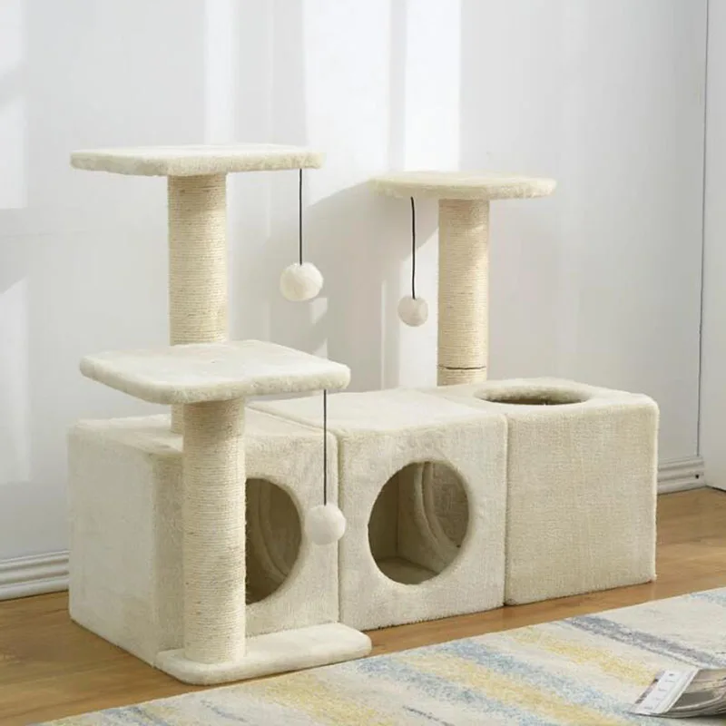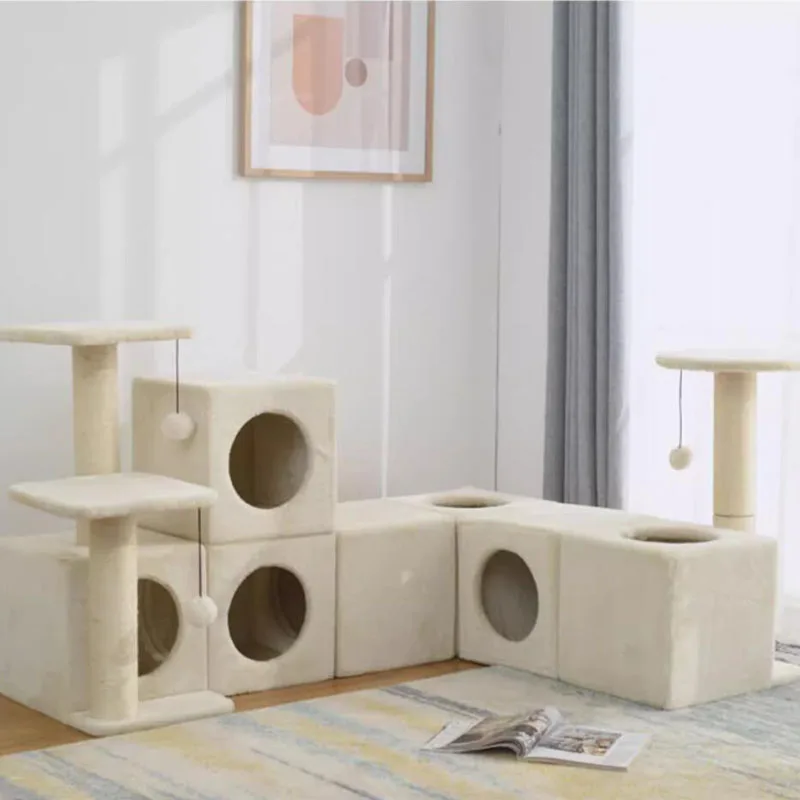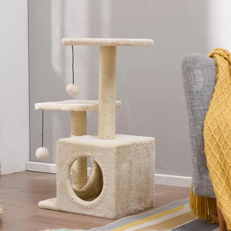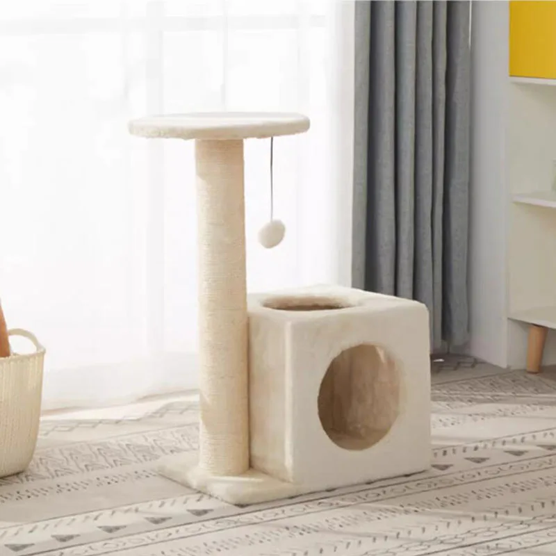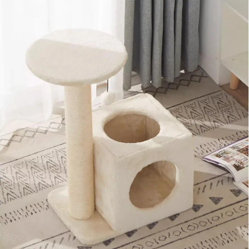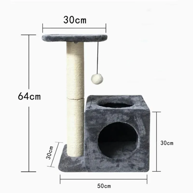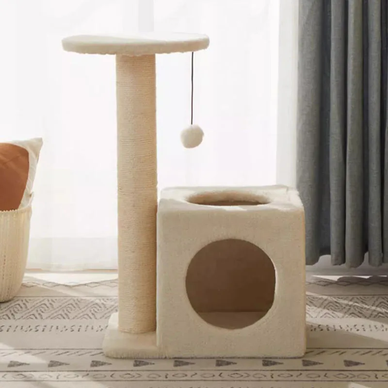 Marco de escalada para gatos, árbol para gatos, marco de madera maciza integrado para gatos pequeños, tablero de columna de agarre con nido, plataforma de salto