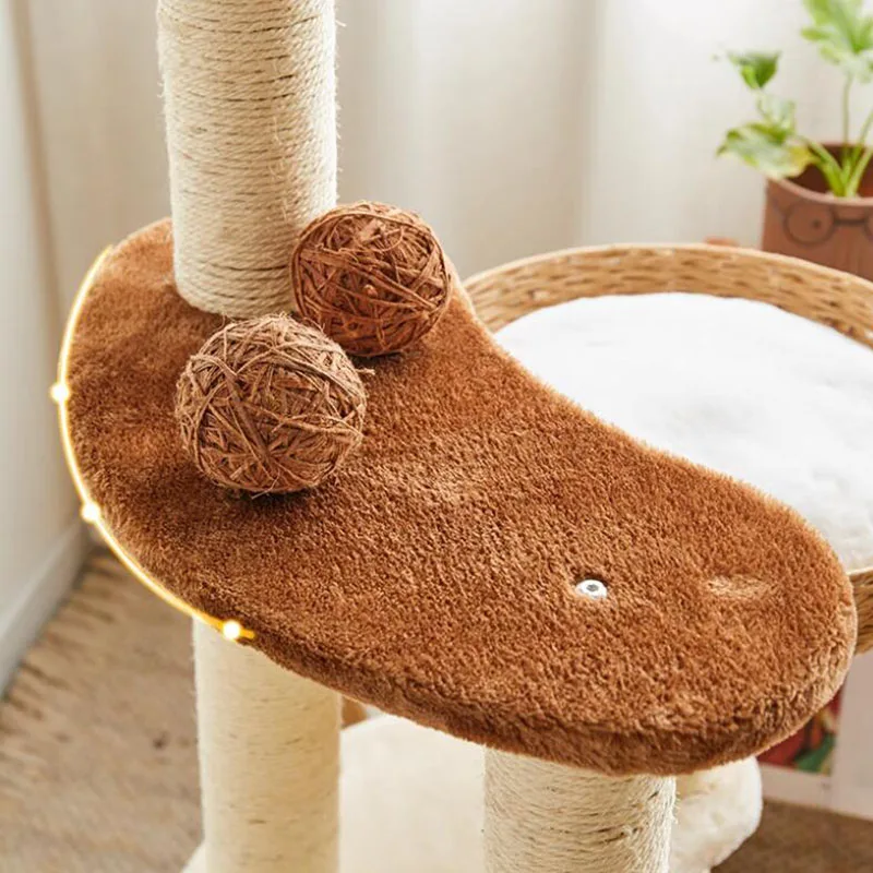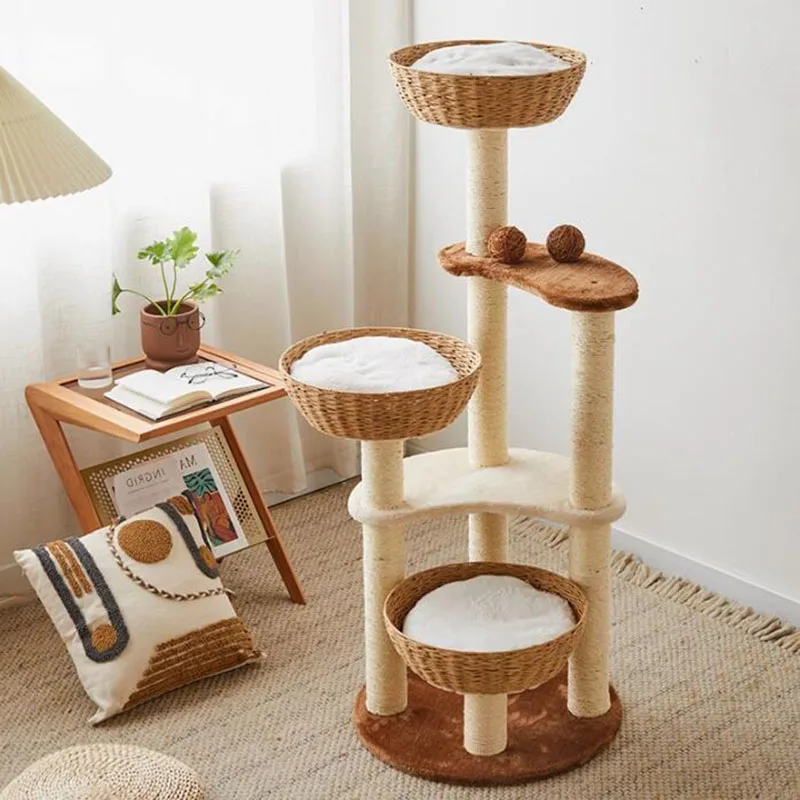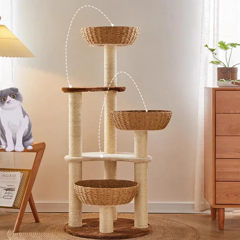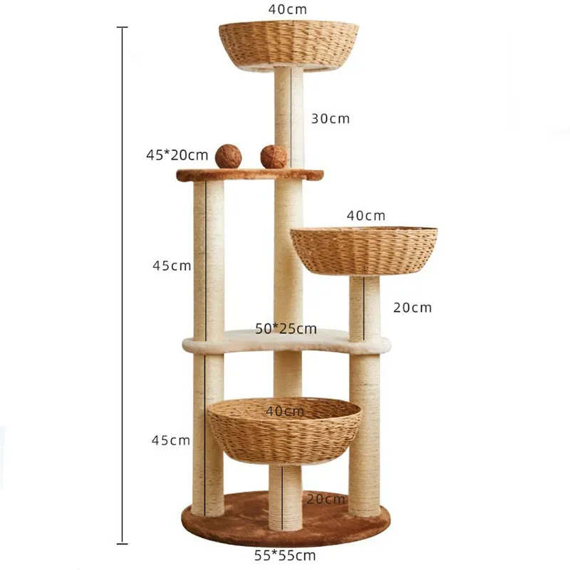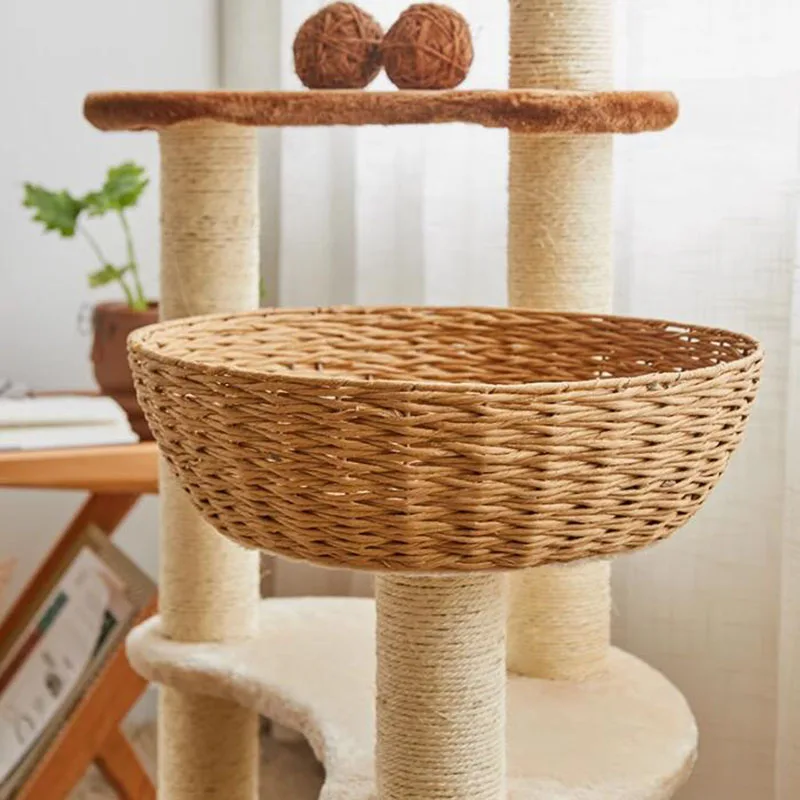 Marco de escalada para gatos, árbol de nido tejido integrado de sisal, poste de rascado multicapa, plataforma grande