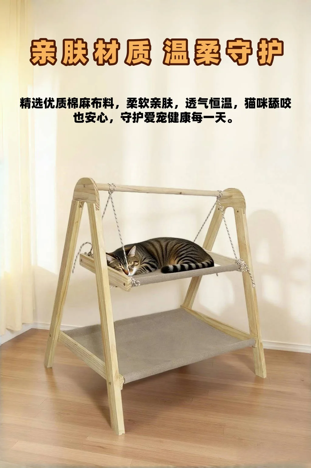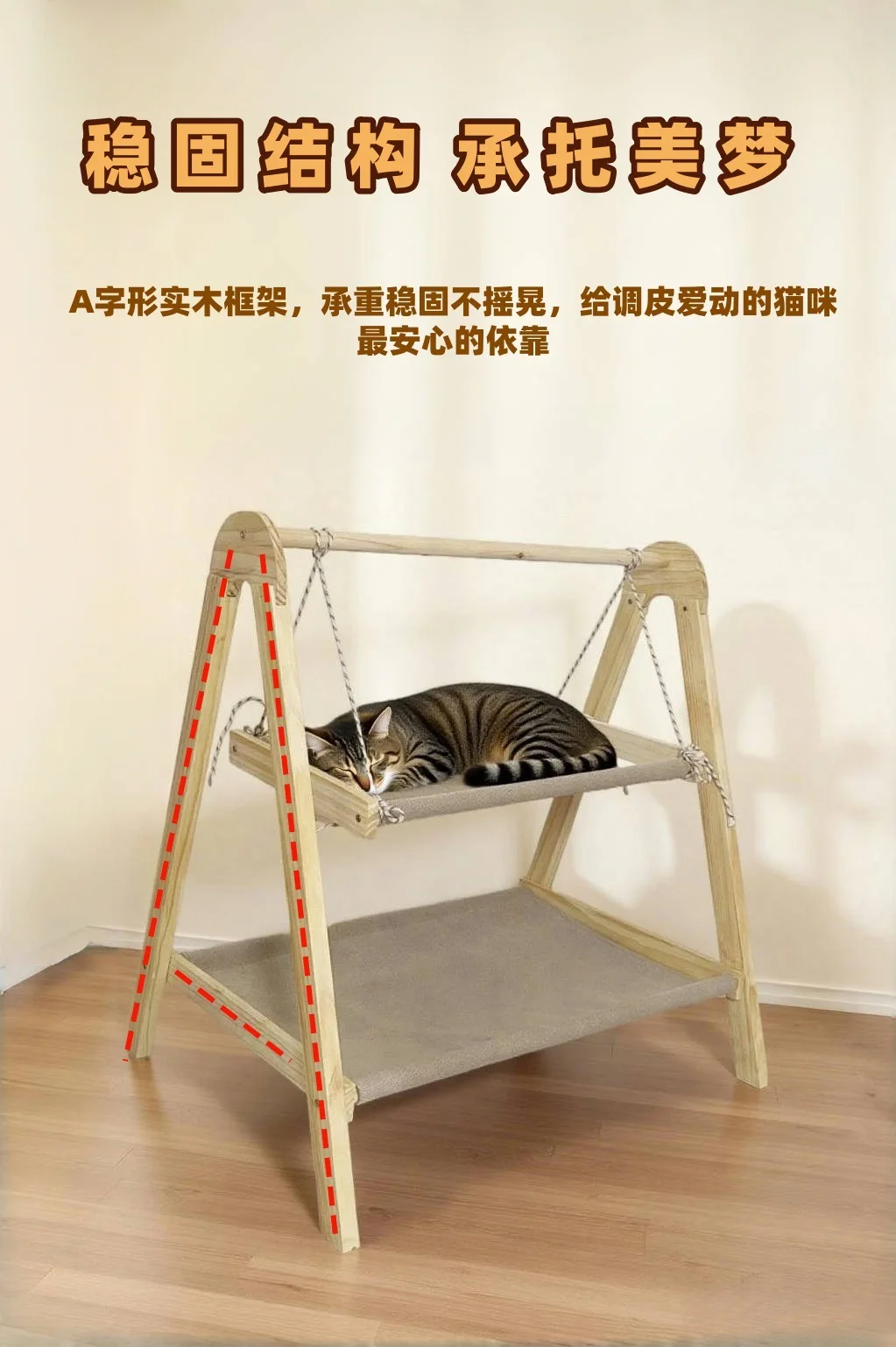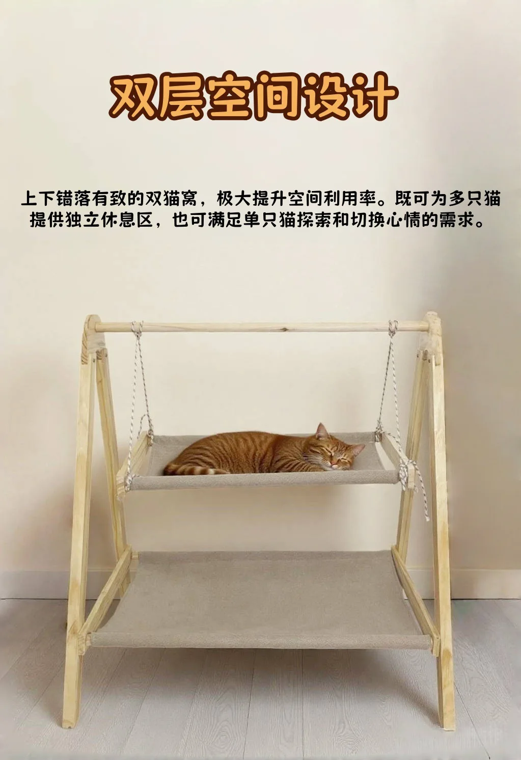 Marco de escalada para gatos, cápsula espacial de madera maciza, hamaca columpio para gatos, nido de seguridad para mascotas de doble capa, nido para cachorros, nido cálido para invierno para mascotas