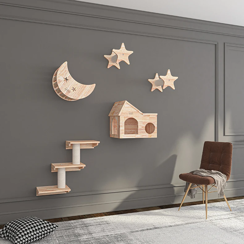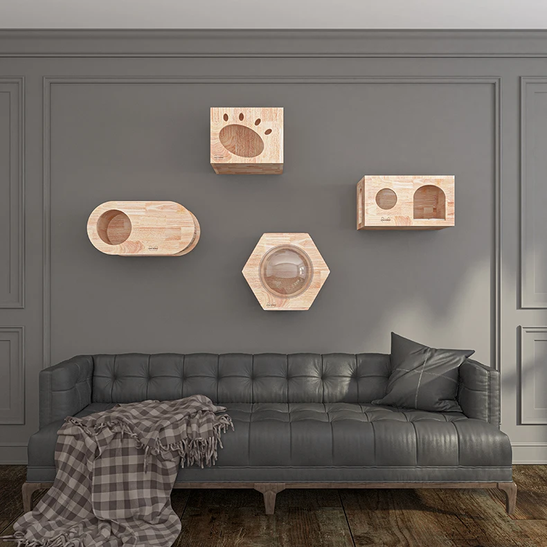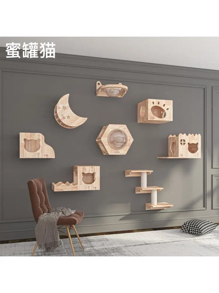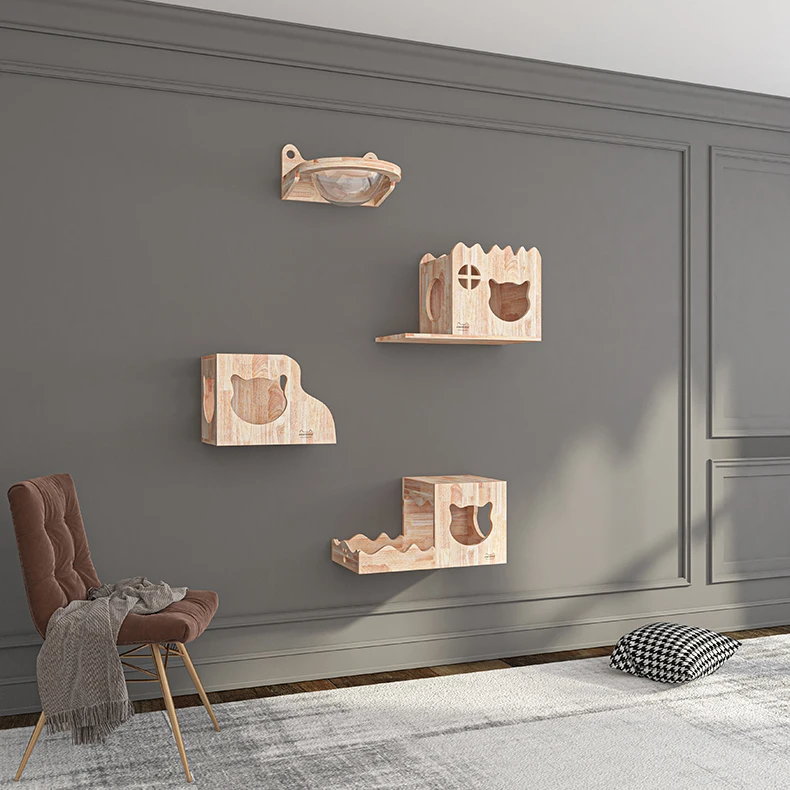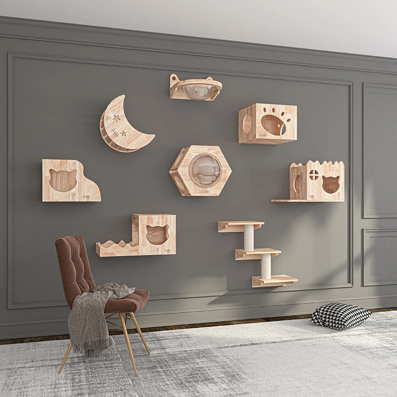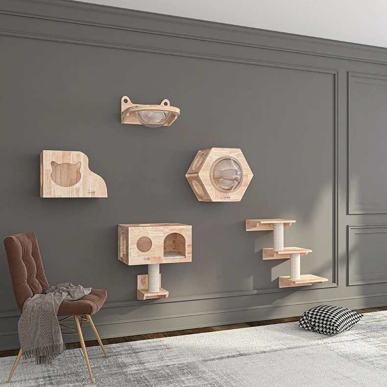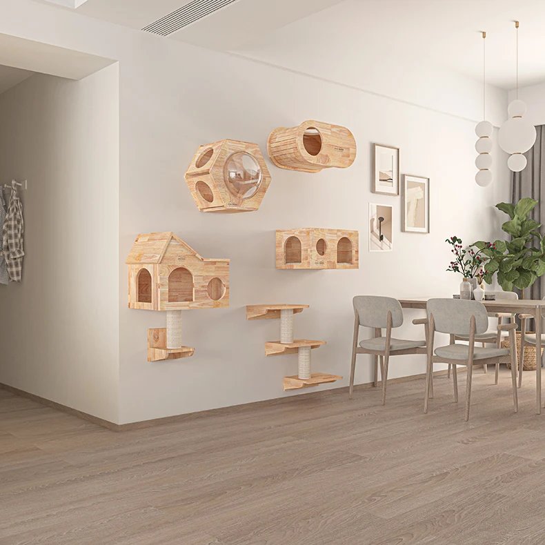 Marco de escalada para gatos, colgante de pared de madera maciza, rascador