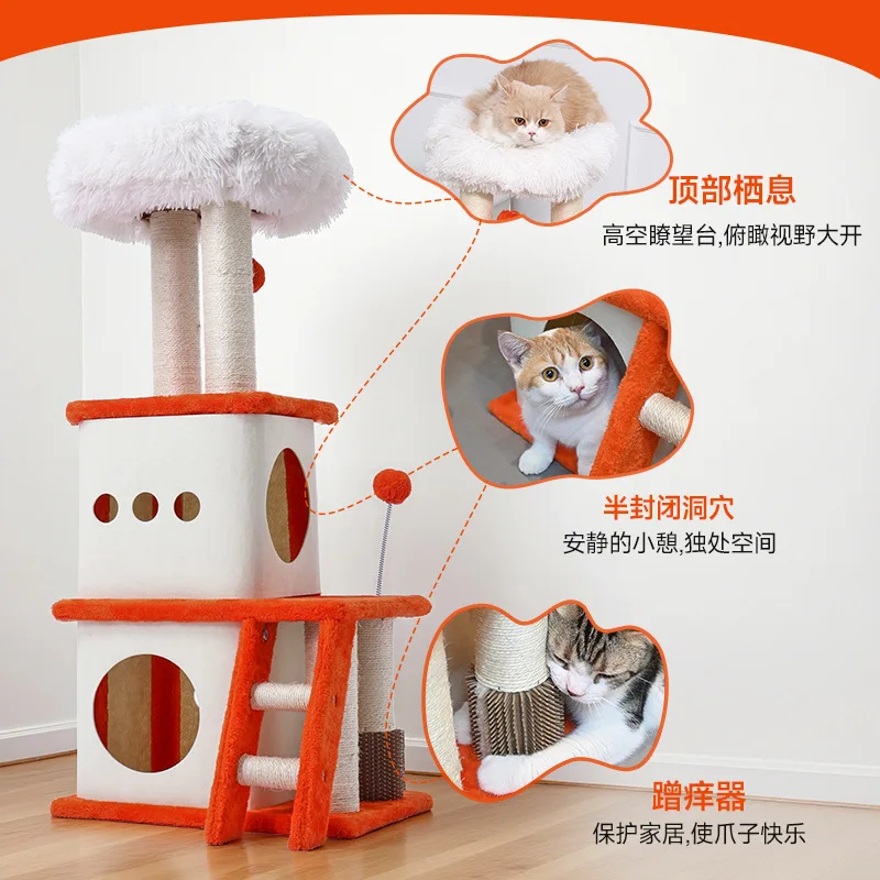 Marco de escalada para gatos integrado, nido de cápsula espacial, estante de madera para mascotas, Pilar de cielo grande, tablero rascador para gatos, juguetes para mascotas