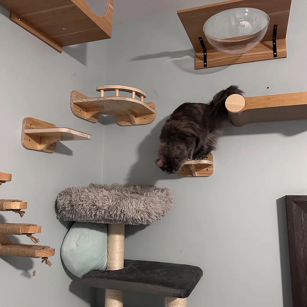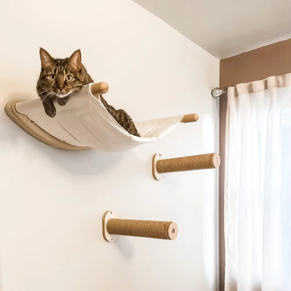 El marco de escalada para gatos montado en la pared crea diversos espacios para gatos