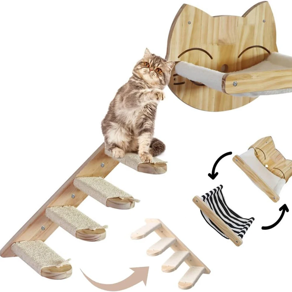 Marco de escalada para gatos montado en la pared, madera maciza de pino, cama colgante, plataforma de salto, poste de escalada para rascar, muebles para mascotas