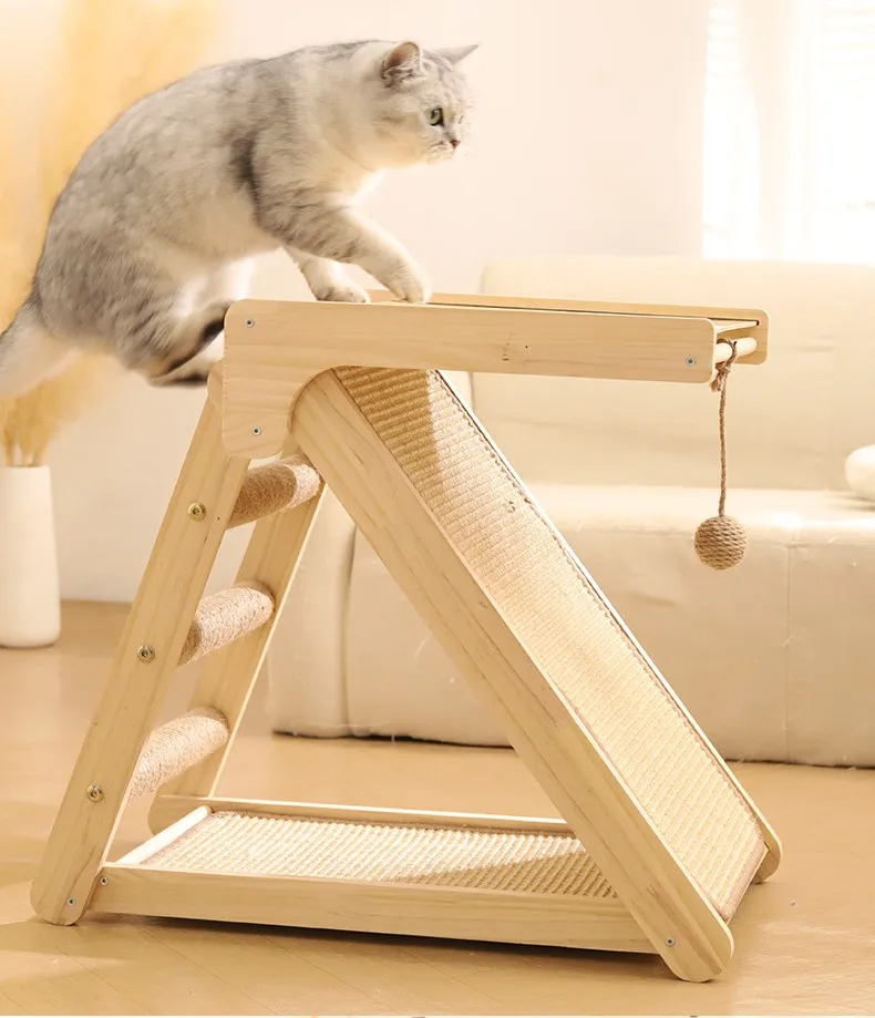 Marco de escalada para gatos, muebles de madera maciza para gatos, esteras de poste de Sisal, tablero rascador para gatos saltando, rascadores plegables para gatos, juguetes para mascotas