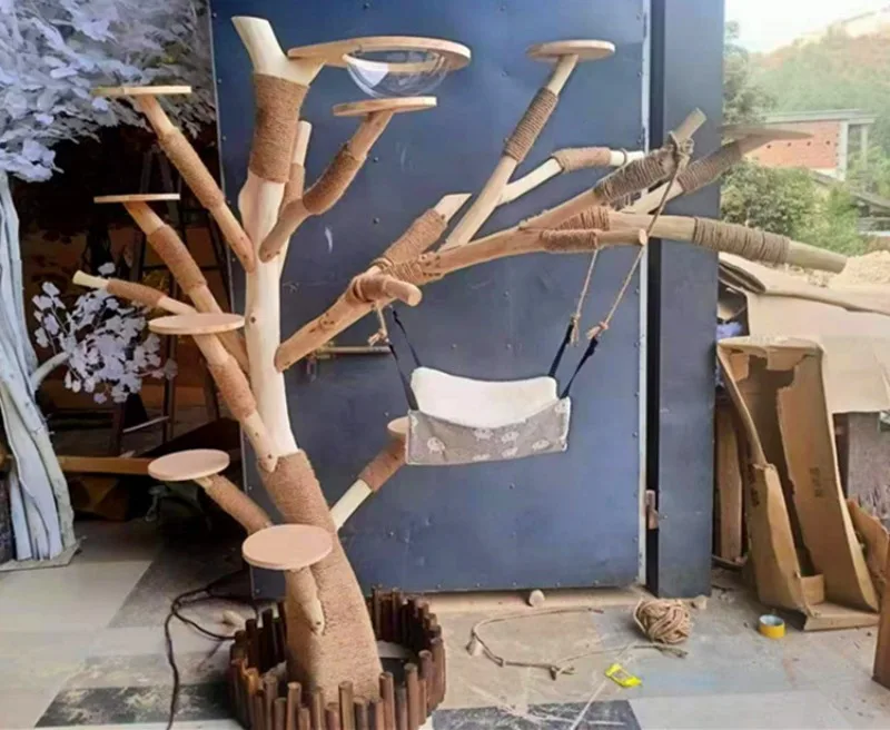 Marco de escalada para gatos, nido, hilo de árbol, rascadores de madera maciza, productos para mascotas, suministros, muebles, Villa de lujo, juguetes de plataforma para saltar para gatos