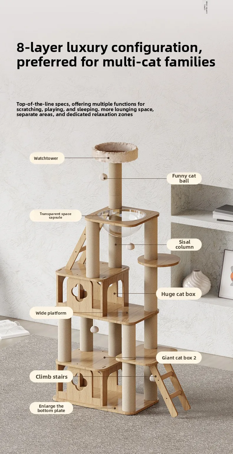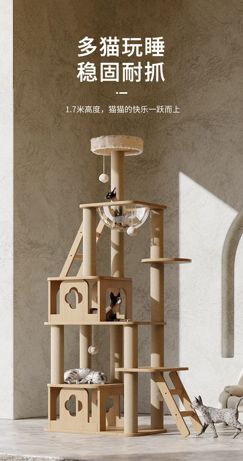 Marco de escalada para gatos, nido para mascotas, plataforma de salto grande integrada de lujo para mascotas, juguete cápsula espacial, marco de escalada grande multicapa para gatos