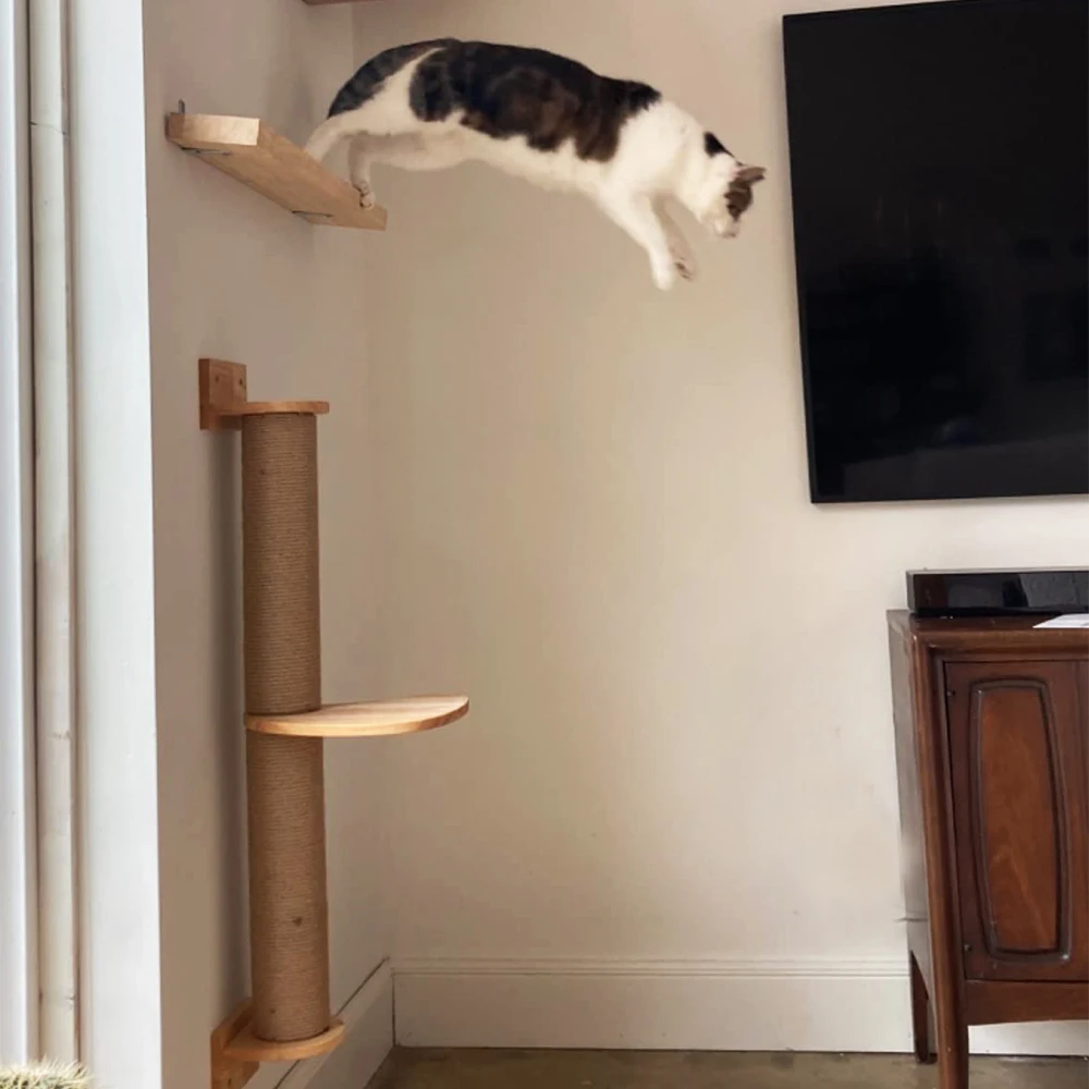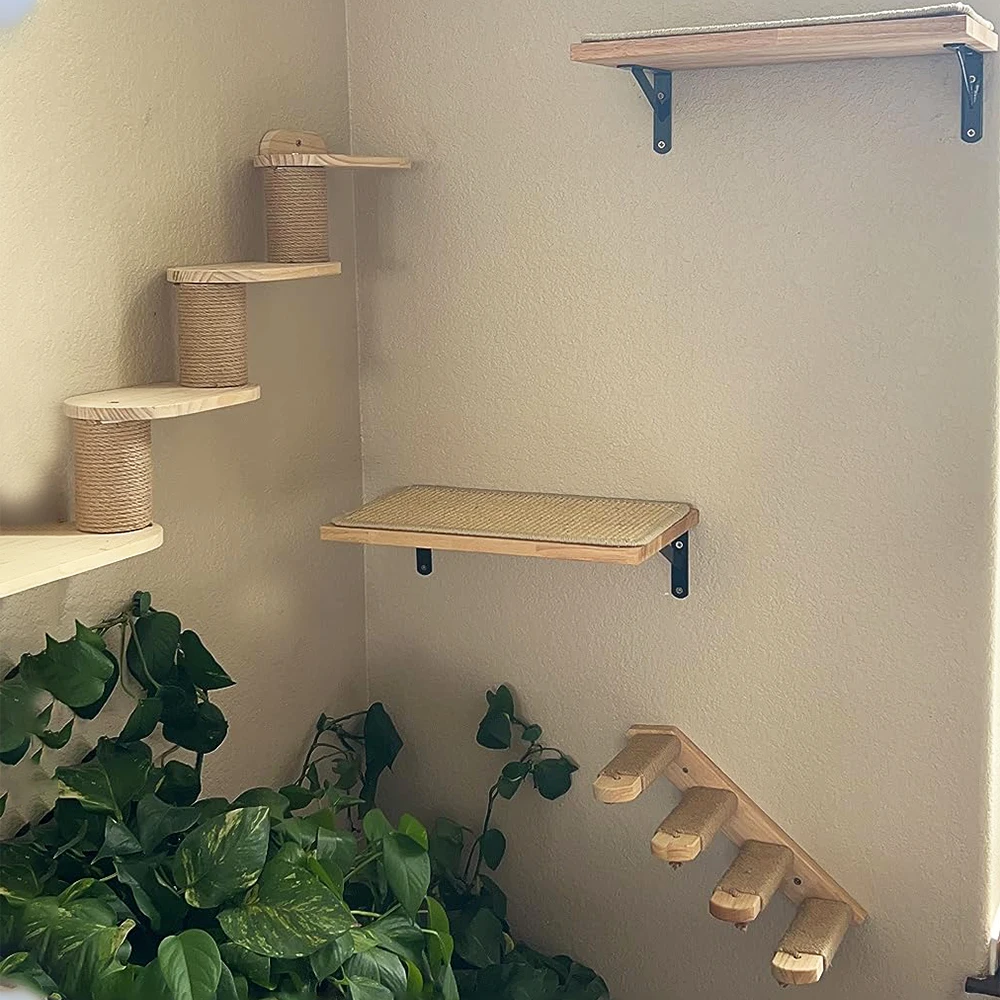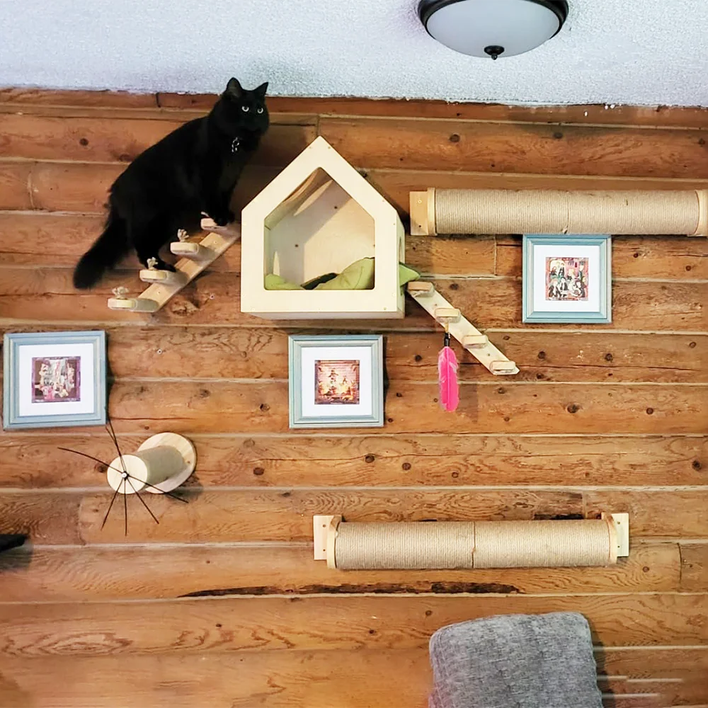 Marco de escalada para gatos de pared, columna de sisal, plataforma de escalada multicapa, descanso de garra para gatos, pegatina de pared integrada