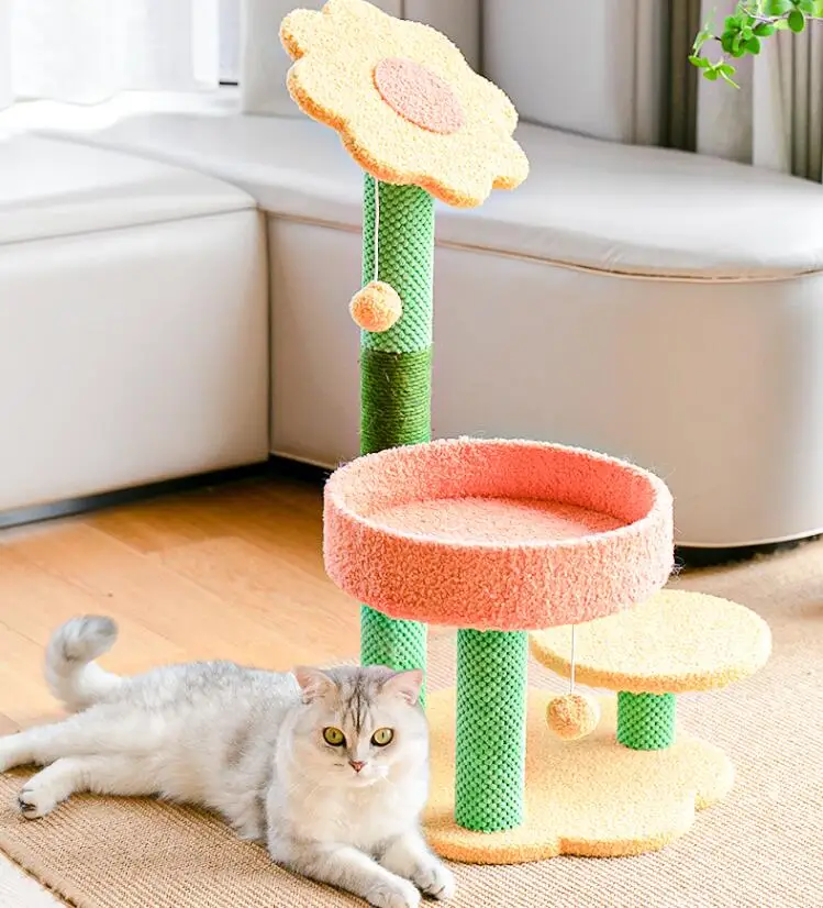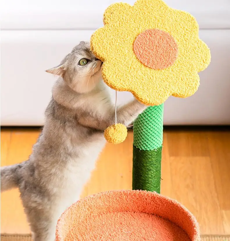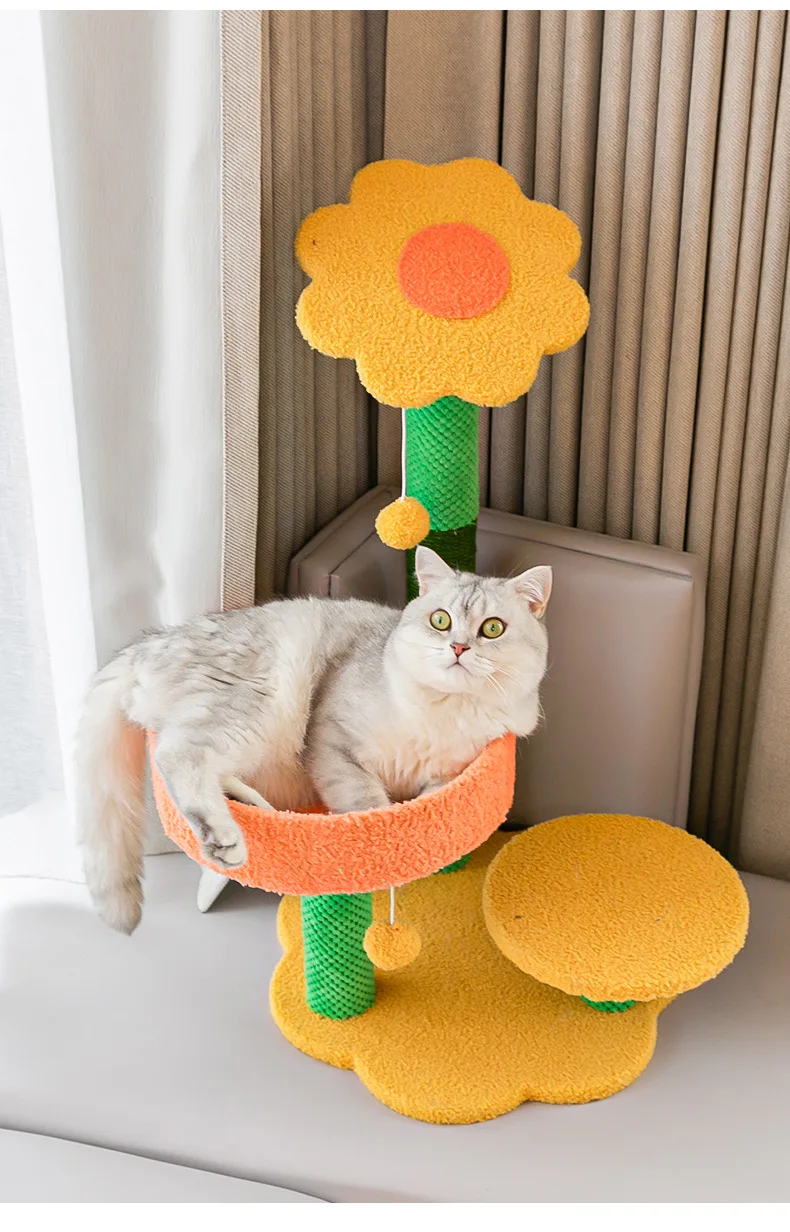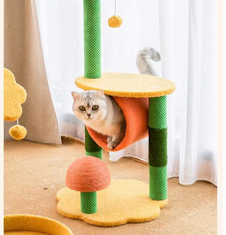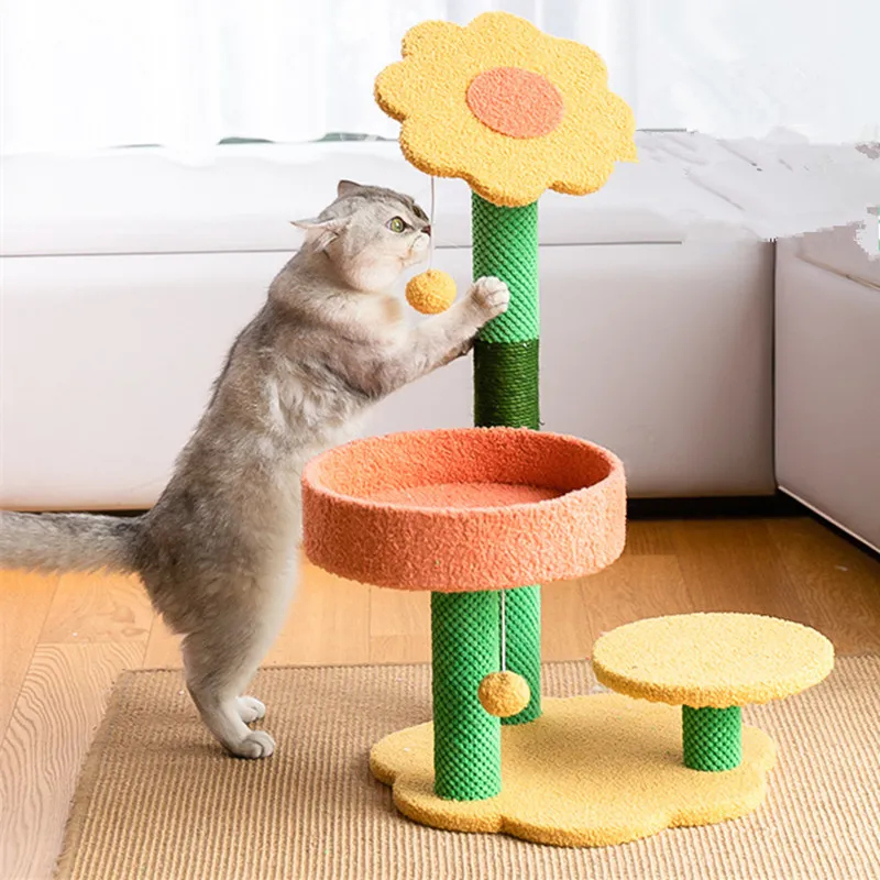 Marco de escalada para gatos, rascador de casa para gatos, poste de rascado de flores para gatos, rascador de Sisal de salto con nido para dormir, juguetes para mascotas