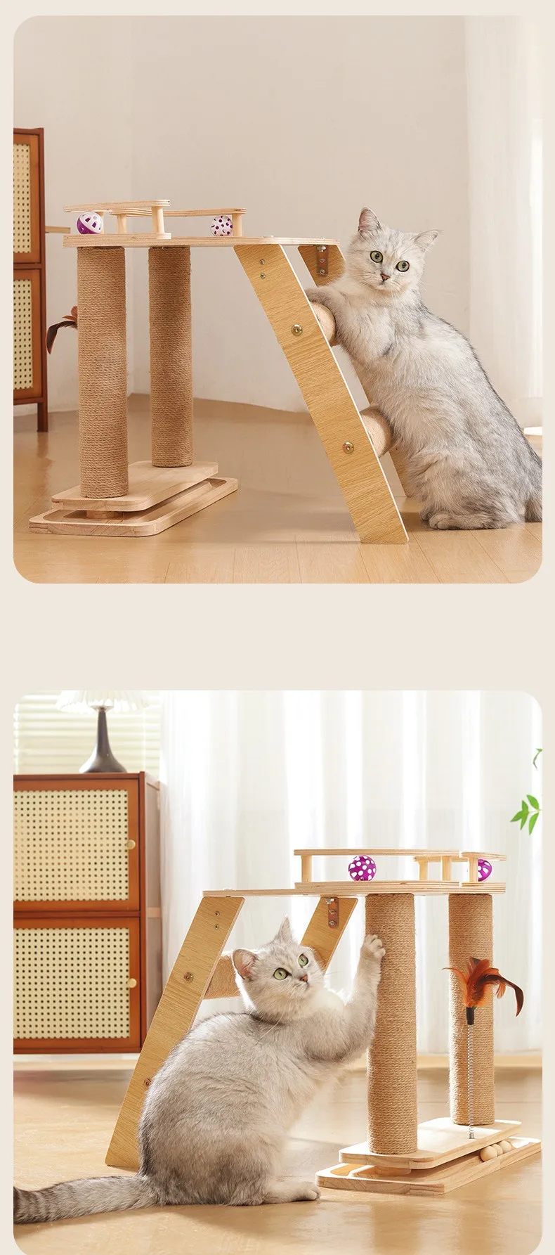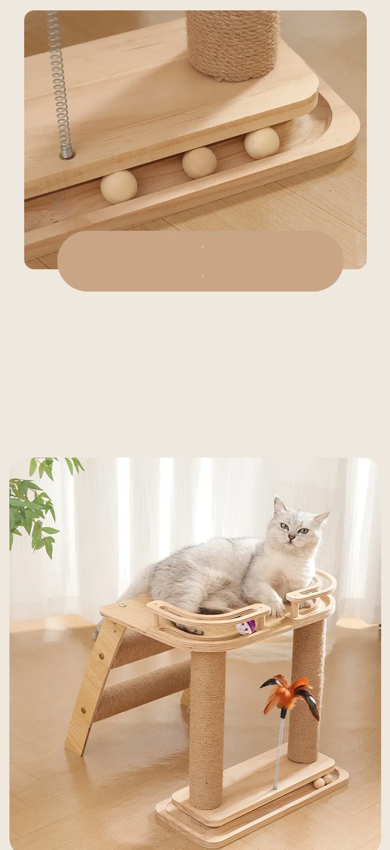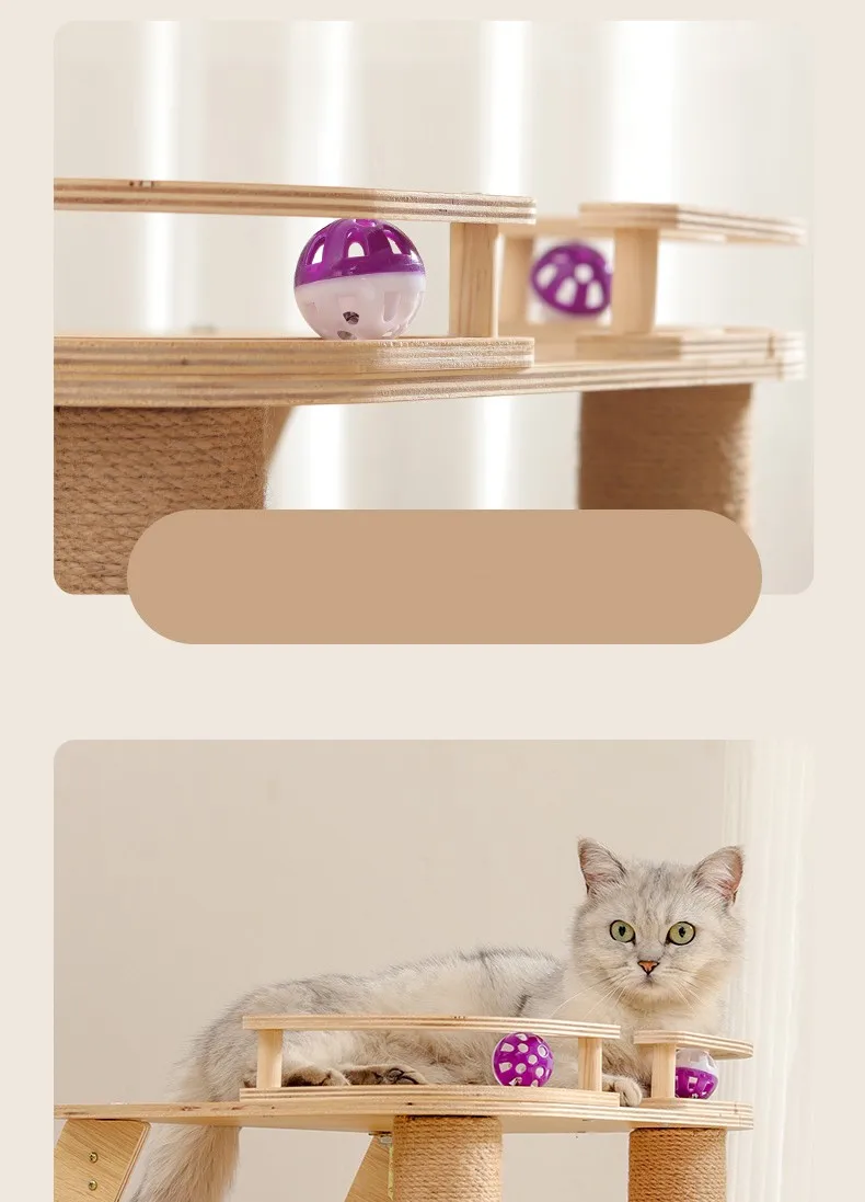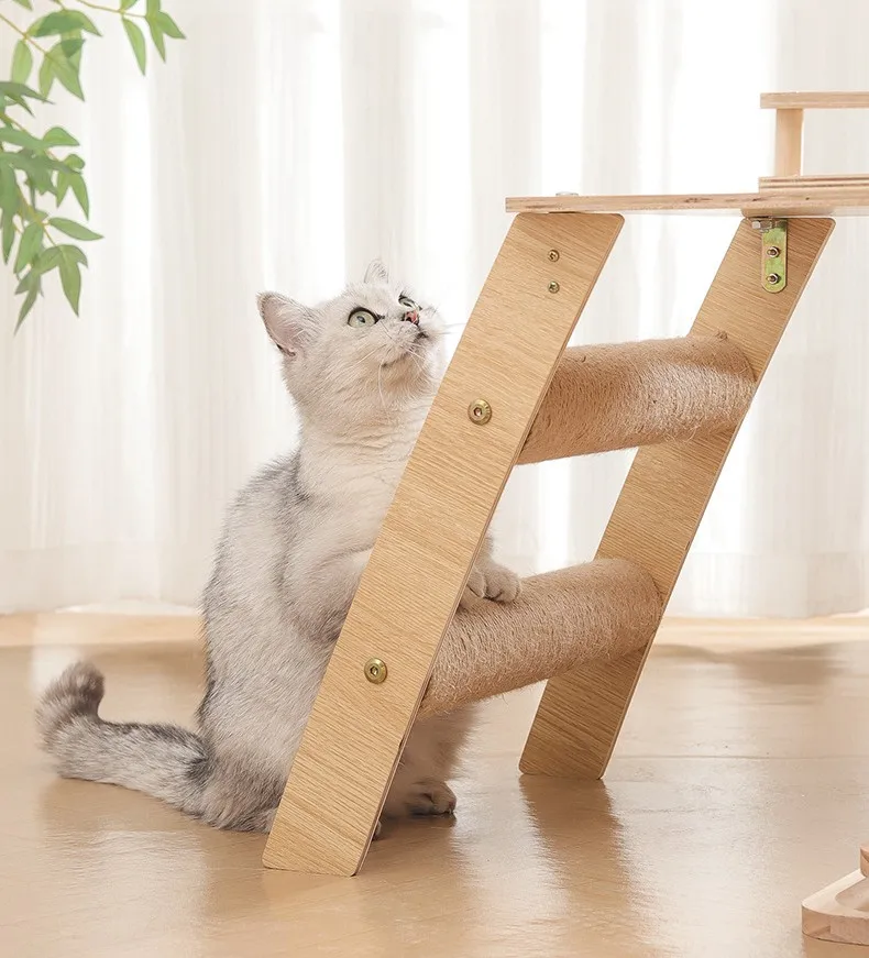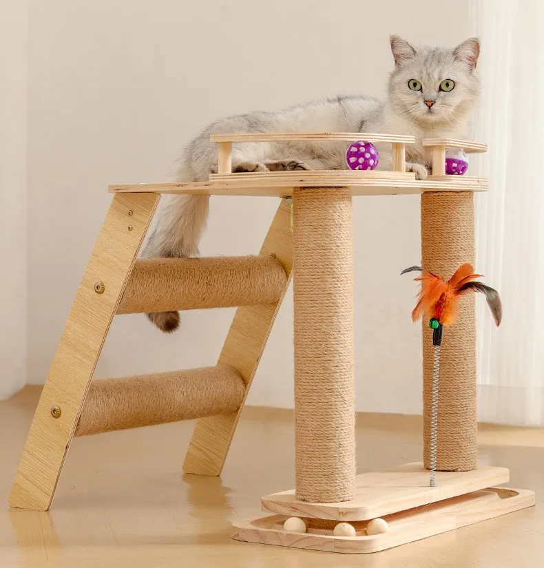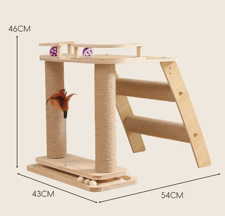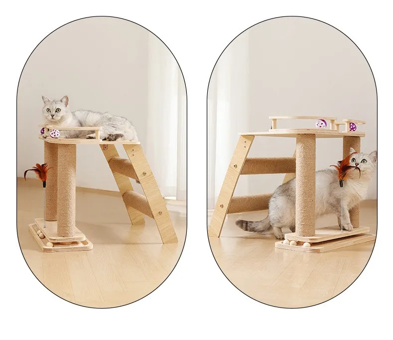 Marco de escalada para gatos, rascadores de madera para gatos, columna para saltar, rascador para gatos con juguetes de plumas, muebles para mascotas