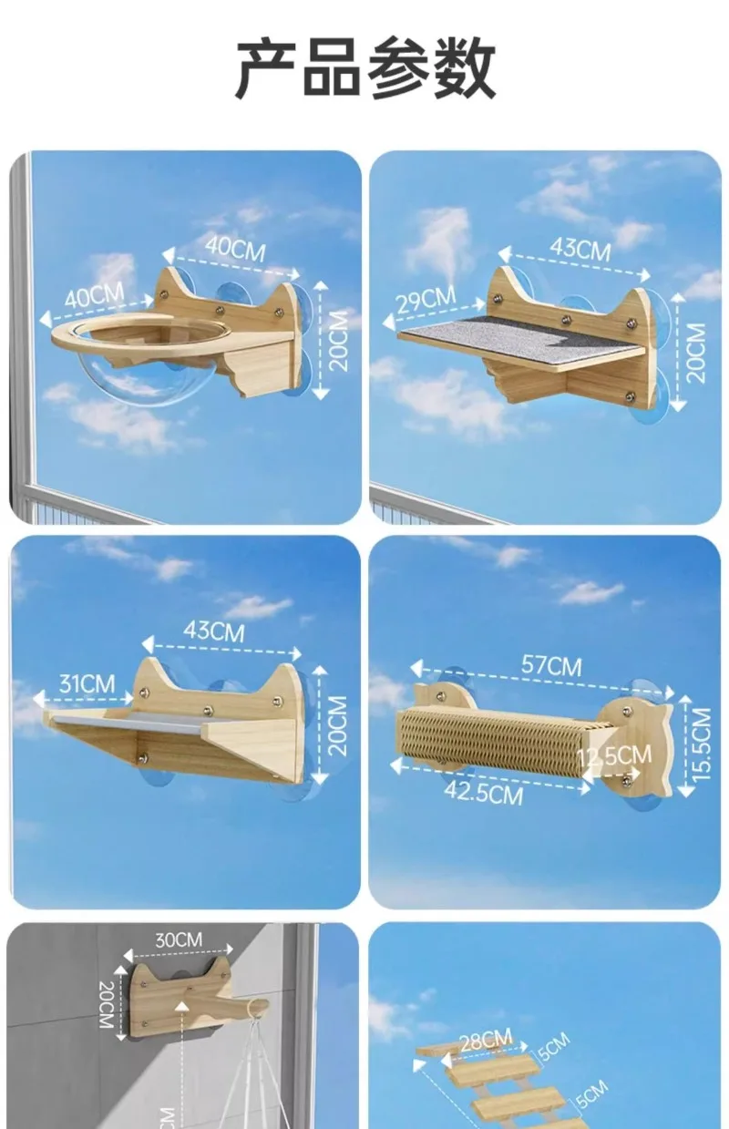 Marco de escalada para gatos con succión de pared, plataforma de pared, ventana, cápsula de vidrio, cesta para nido de gato, cama Xyloid, rascadores para mascotas, productos, muebles