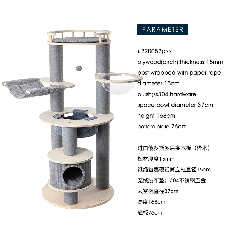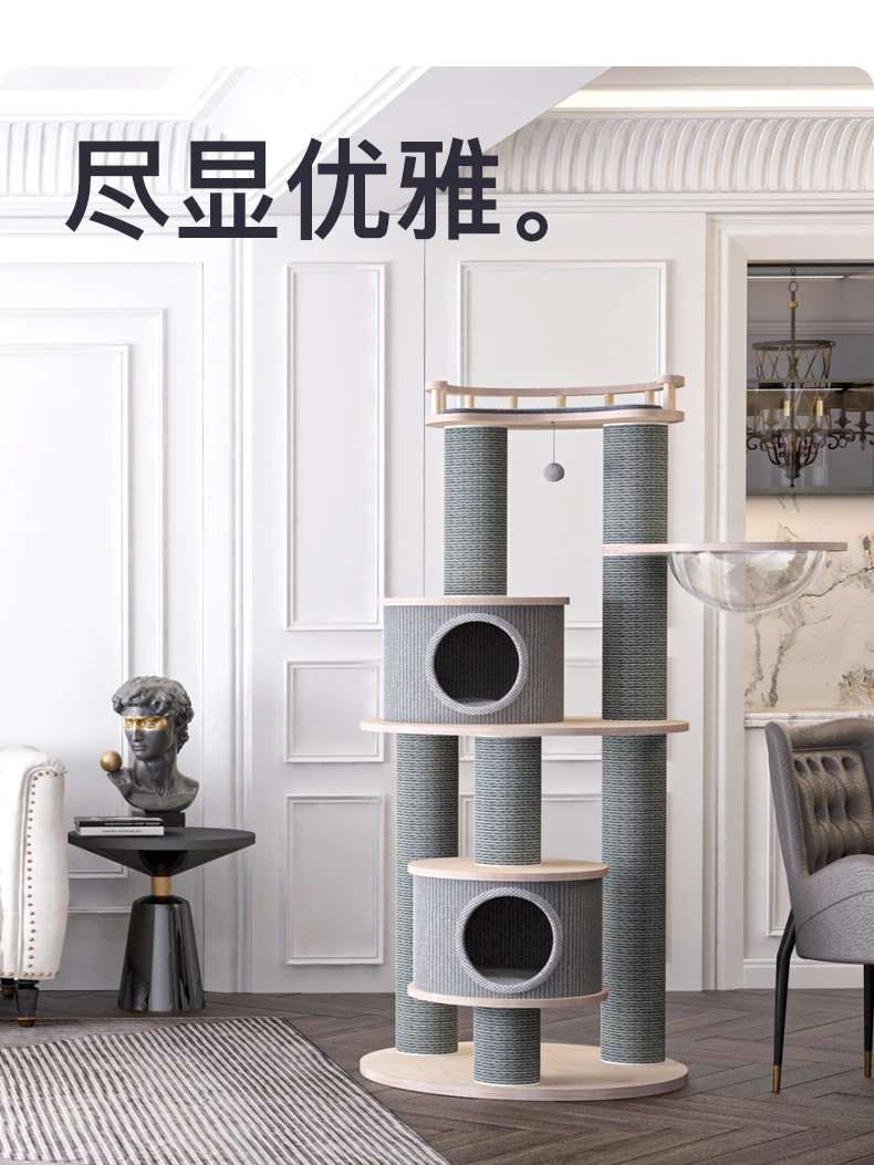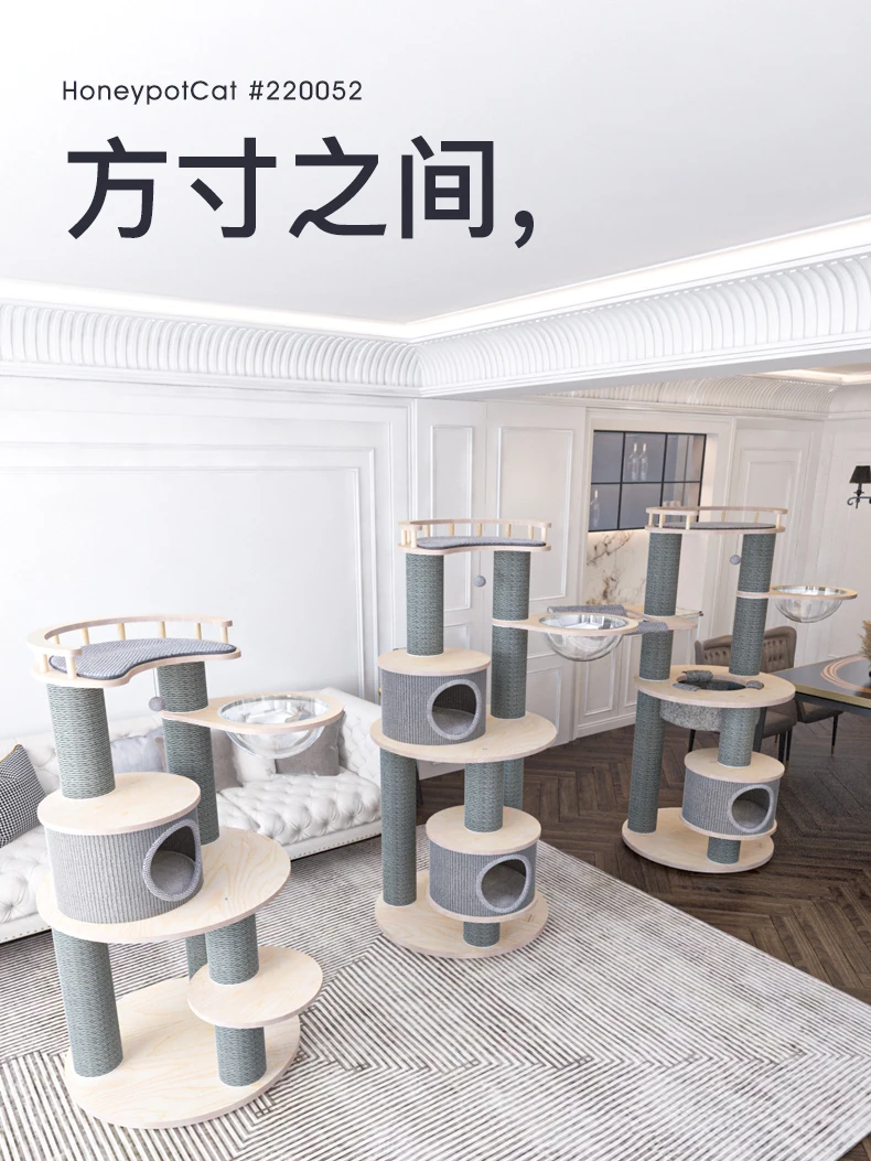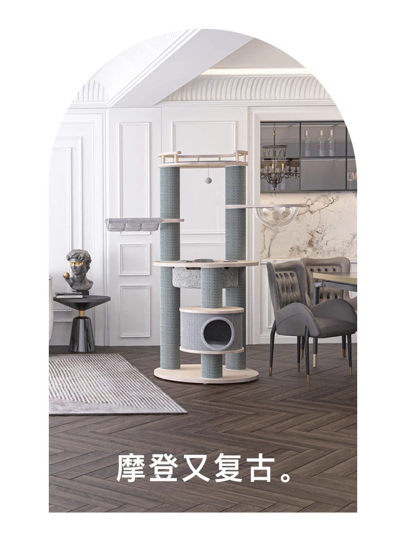 Marco de escalada de lujo para gatos, árbol de arena para gatos y marco de madera maciza, torre grande para gatos