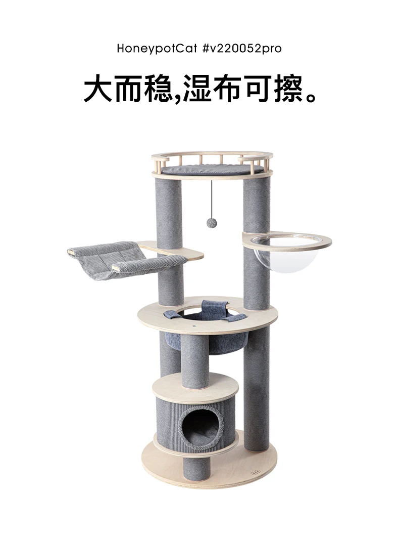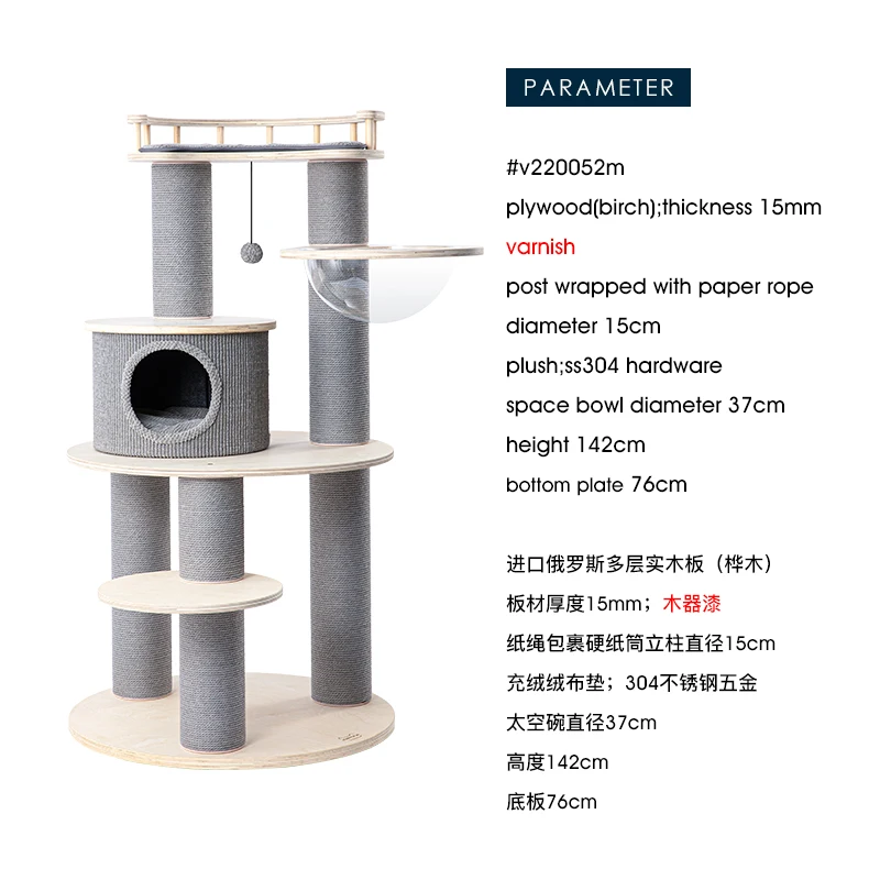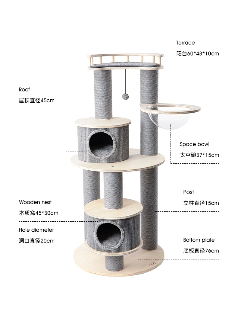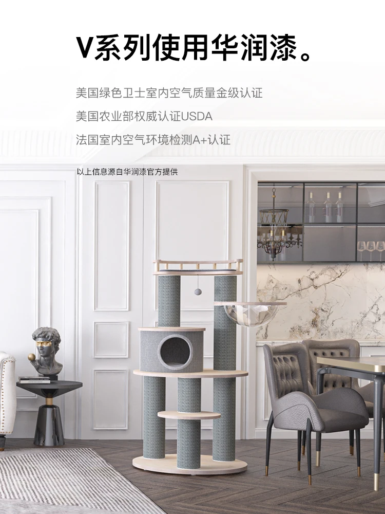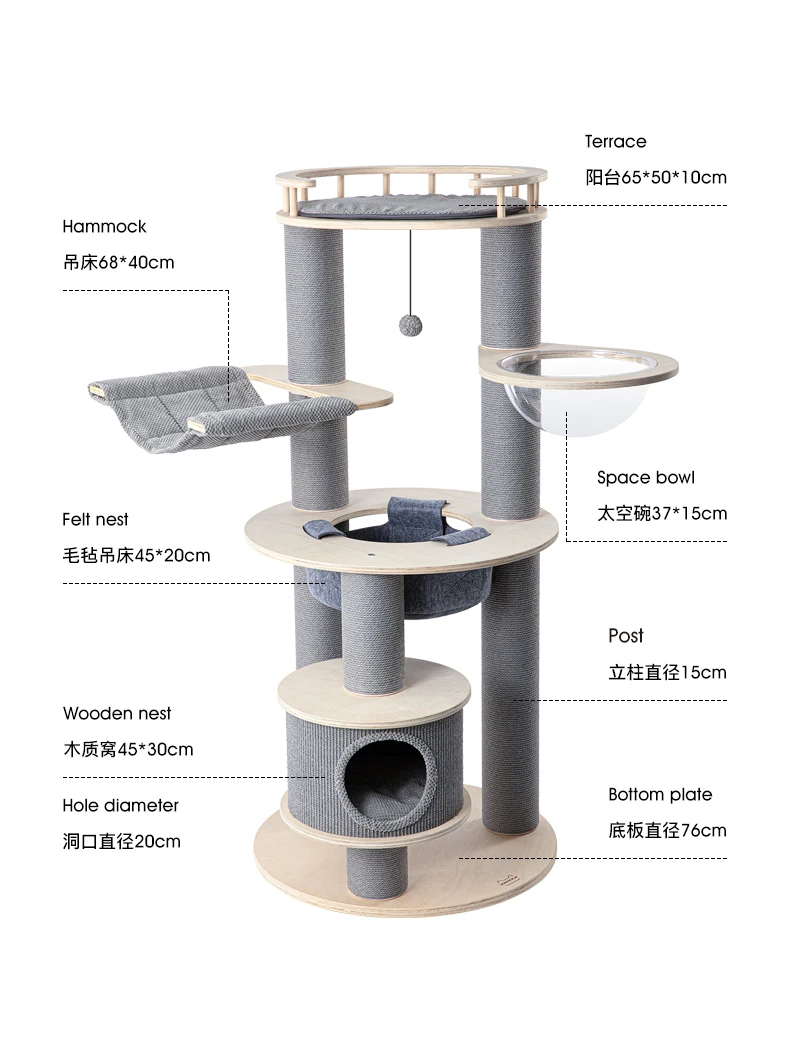 Marco de escalada de lujo para gatos, árbol de arena para gatos y marco de madera maciza, torre grande para gatos