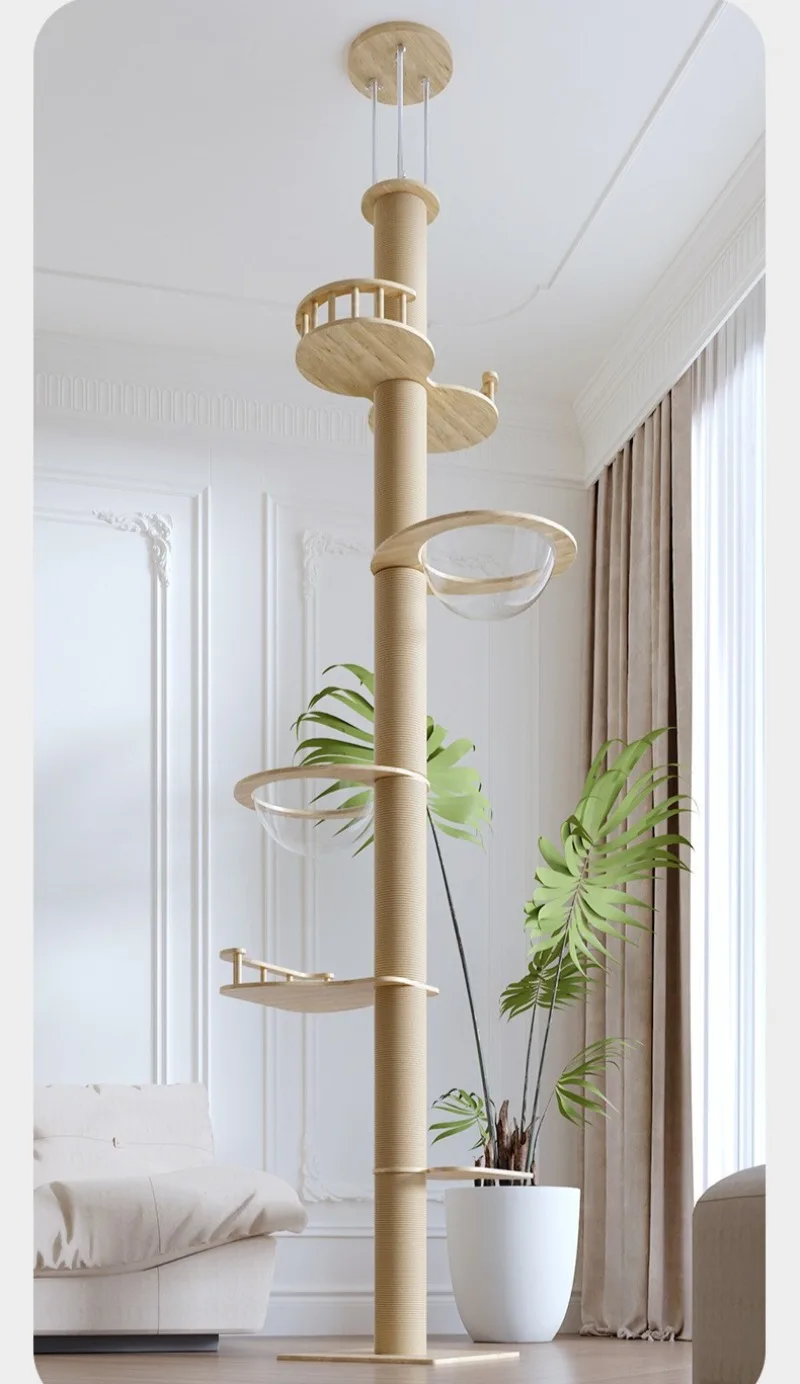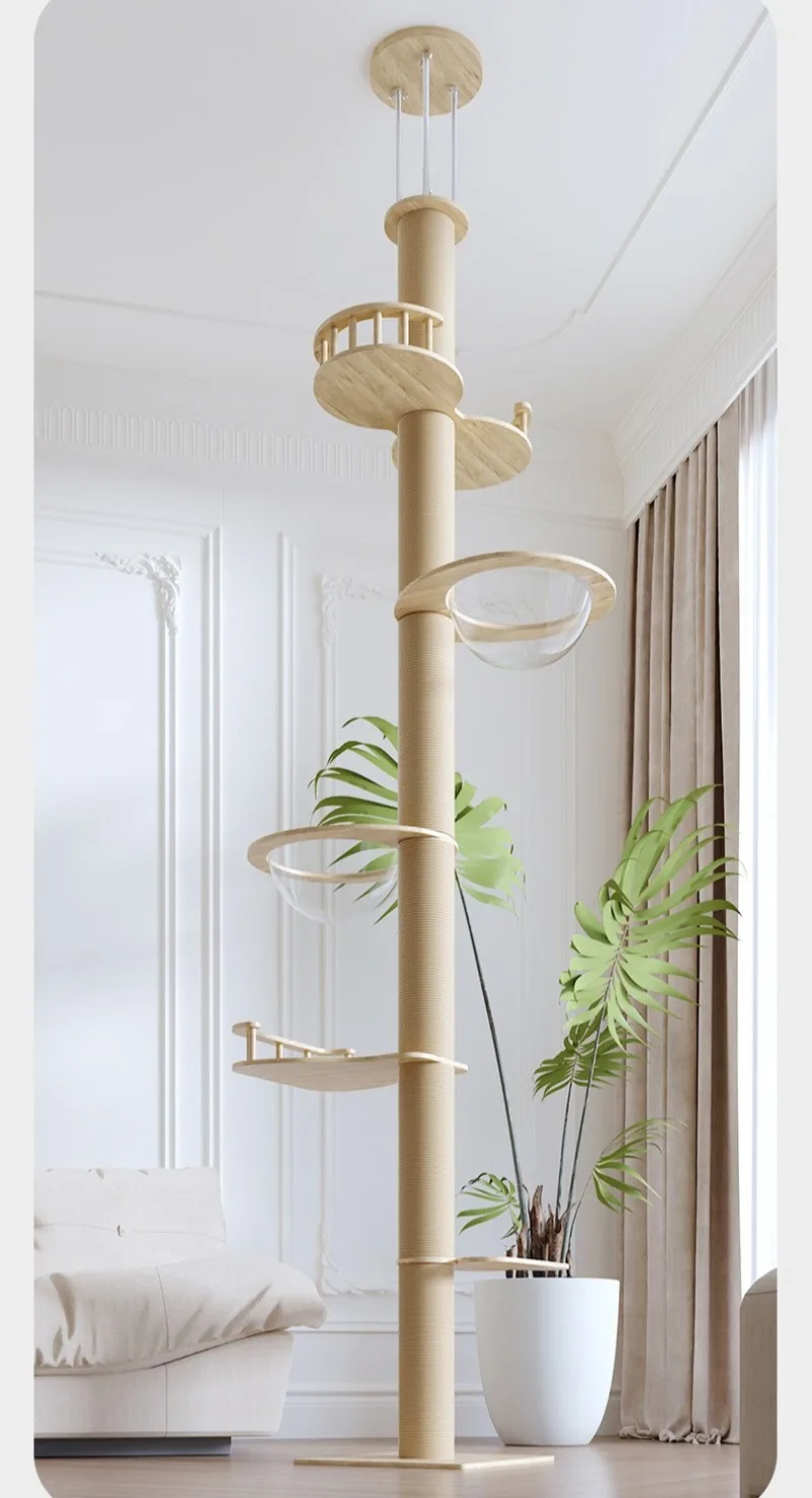 Marco de escalada de madera para gatos, torres grandes de suelo a techo, marco de escalada para gatos, poste rascador duradero, suministros de muebles para mascotas