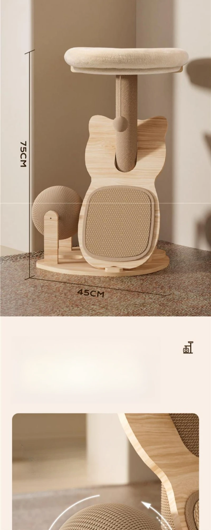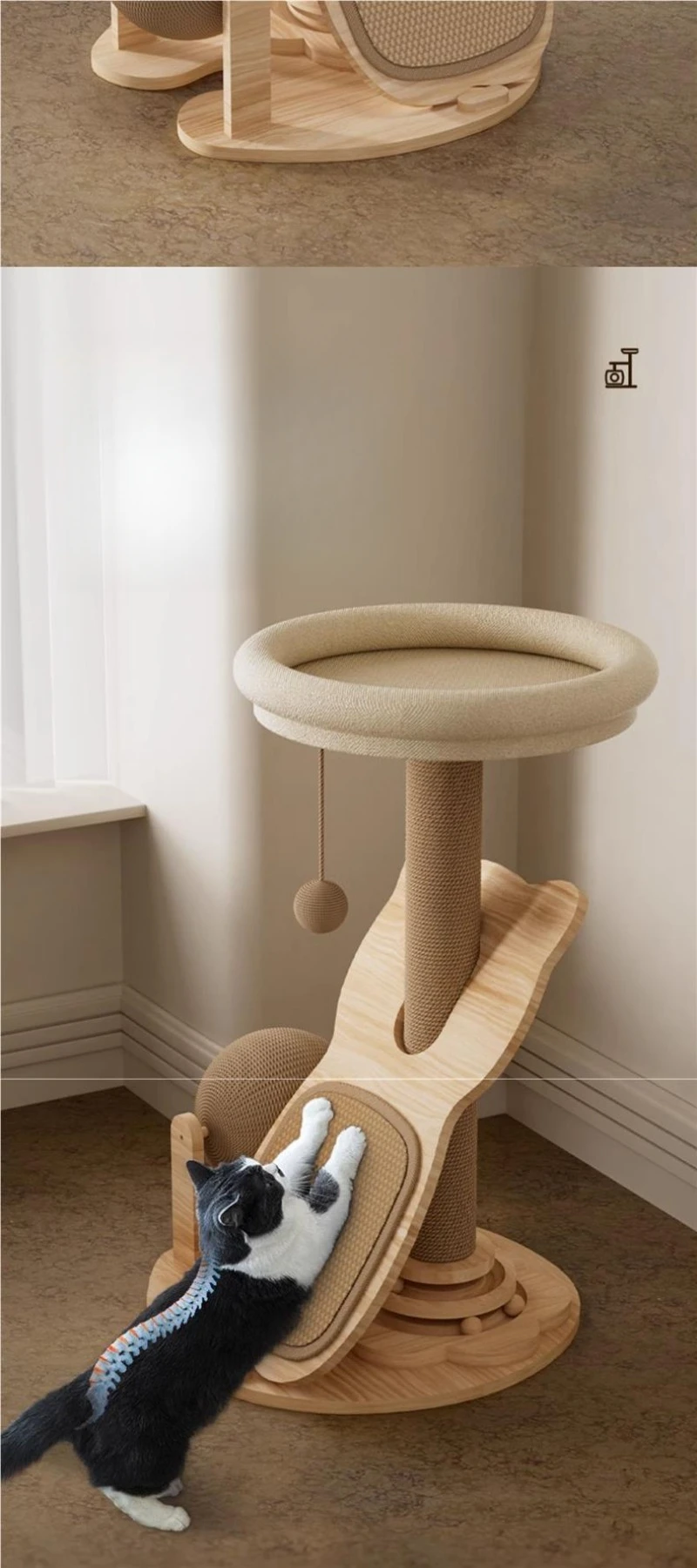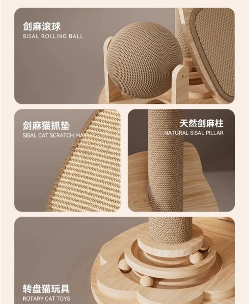 Marco de escalada para gatos Tablero rascador para gatos de sisal para el hogar, teaser para gatos de juguete pequeño, arena para gatitos, plato giratorio para gatos de madera maciza