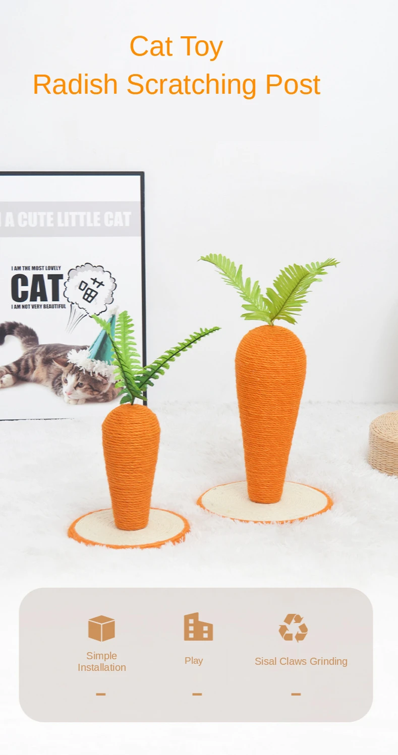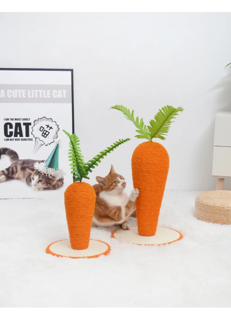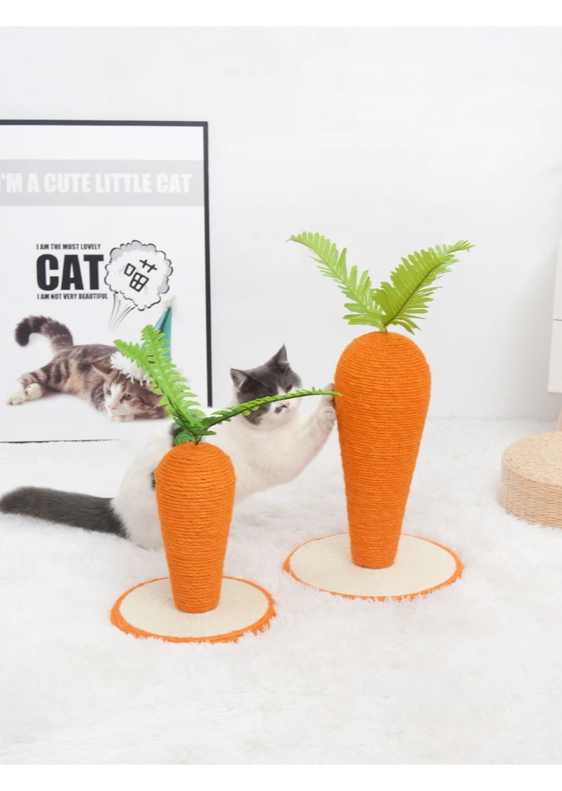 La forma única de la zanahoria no sólo luce atractiva sino que también anima a su gato a jugar y trepar.
