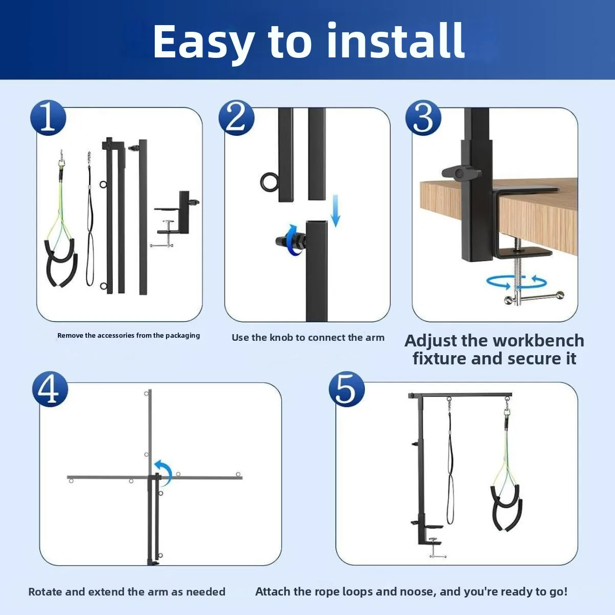 Marco fijo para el cuidado de perros, juego de 5 piezas, mesa de aseo para mascotas, soporte de pluma, mesa de belleza, herramientas de aseo para gatos y perros, productos para mascotas
