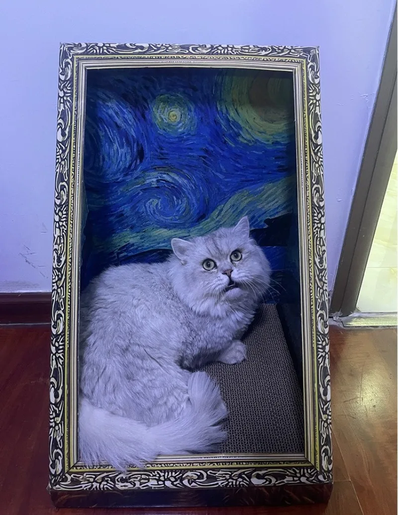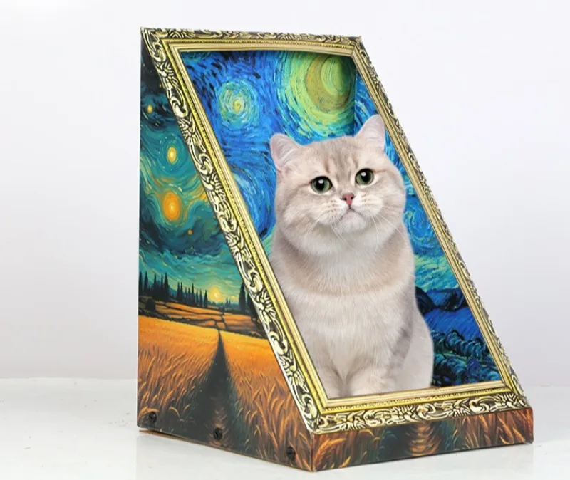 Marco de pintura al óleo, nido de gato, tablero rascador, arte Retro, cama nido de gato, garra de molienda, nido de gatito duradero, juguete para gatos de papel corrugado