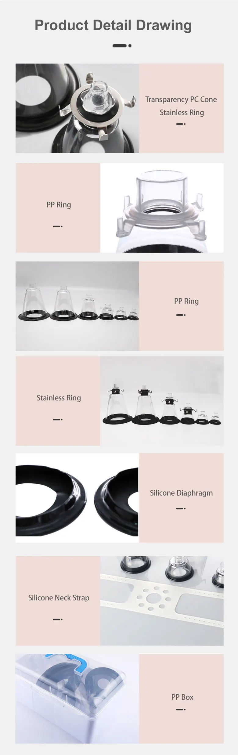 Hecho de un cono de PC de alta transparencia y un diafragma de silicona negro suave.