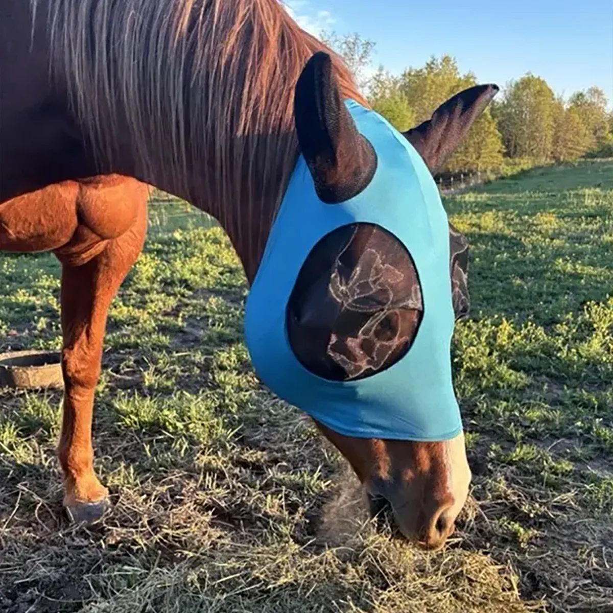 Máscara transpirable para moscas de caballo con protección UV: cubierta facial de malla ligera a prueba de insectos para montar, equipo de entrenamiento ecuestre antimoscas, accesorios ajustables para caballos (exteriores)