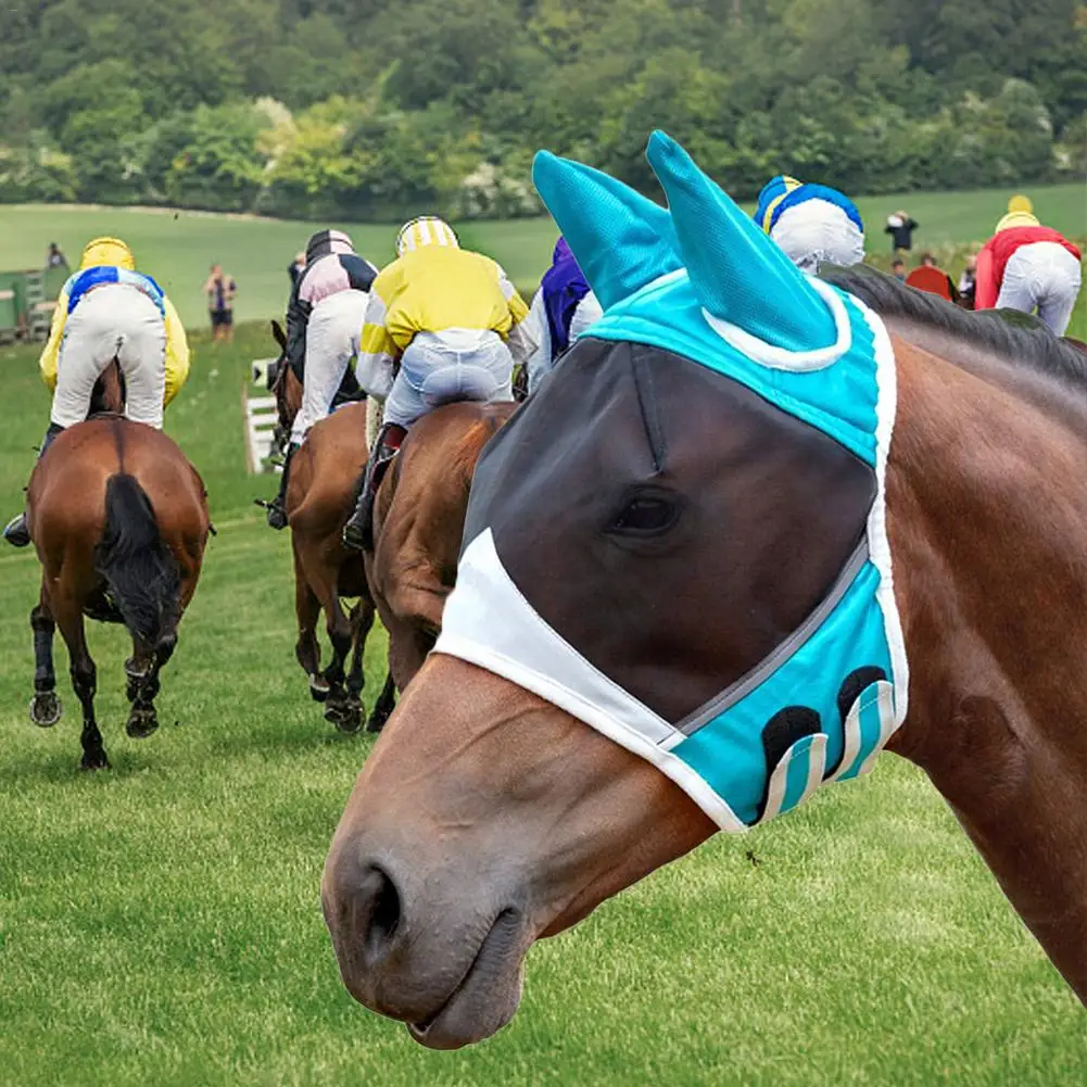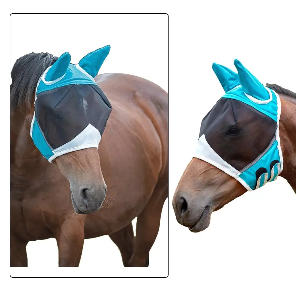 Nombre: Máscara de mosca de caballo, máscara de caballo transpirable cómoda con oreja, máscara de caballo antimosquitos