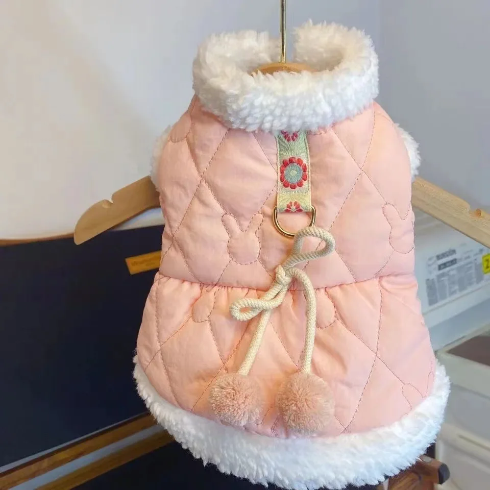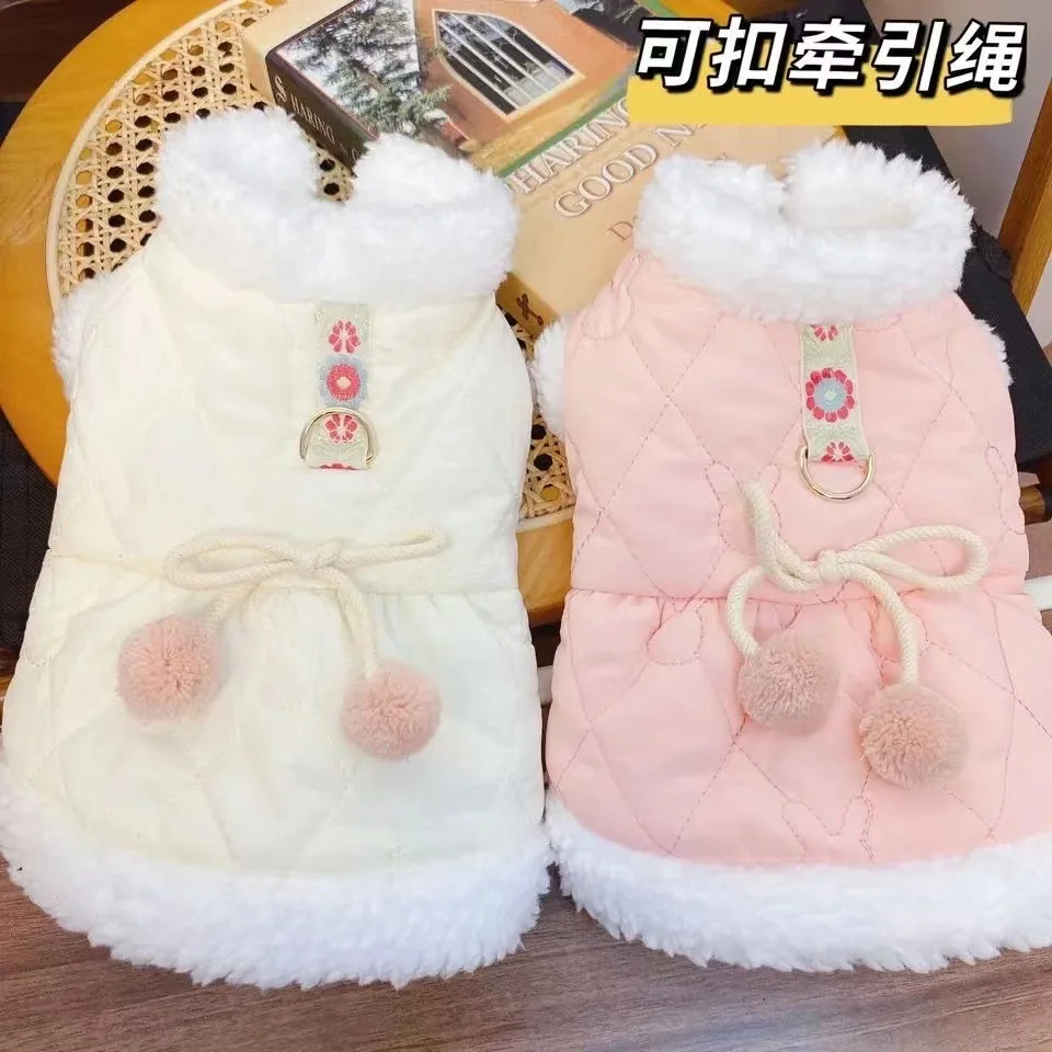 Mascota con hebilla de tracción de felpa para perros pequeños, Collar de felpa más cálido para otoño e invierno, ropa de oso de peluche, ropa para cachorros pequeños