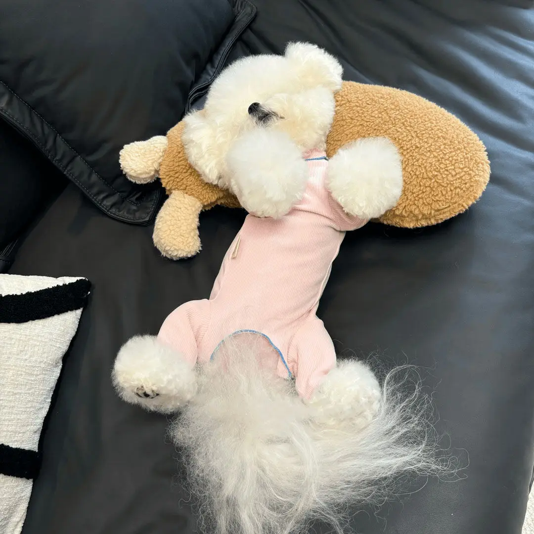 Mascota Otoño Invierno terciopelo bordado arco cuatro patas vientre envoltura Teddy protección del vientre ropa de casa pijamas ropa de cachorro - imagen 4