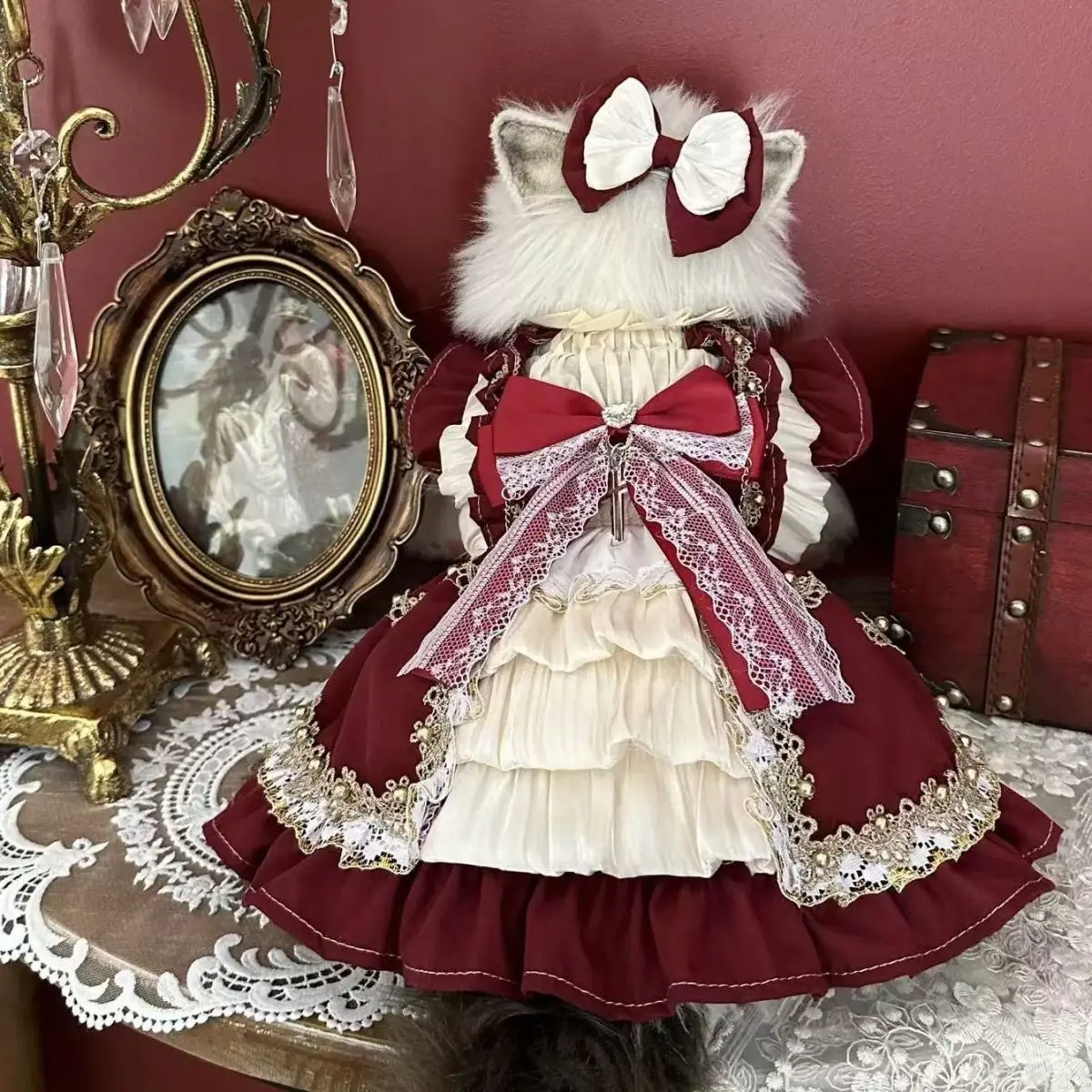 Mascotas Primavera/Verano lazo de terciopelo gato princesa encaje cuatro estaciones vestido de peluche lindo vestidos para perros pequeños ropa para cachorros