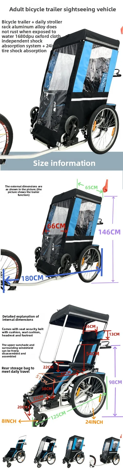 Mascotas de viaje para adultos permitidas turismo coche/remolque de bicicleta/carrito plegable para silla de ruedas