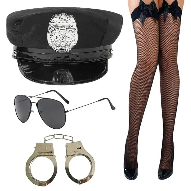 4. Bonito regalo: sorprende a tu amante con este vívido disfraz de mujer policía, completo con medias, gafas de sol y un silbato. Ya sea para un cumpleaños, un aniversario o simplemente por diversión, este conjunto de juegos de rol le dará vida a su relación y le hará sentir sexy y sexy.