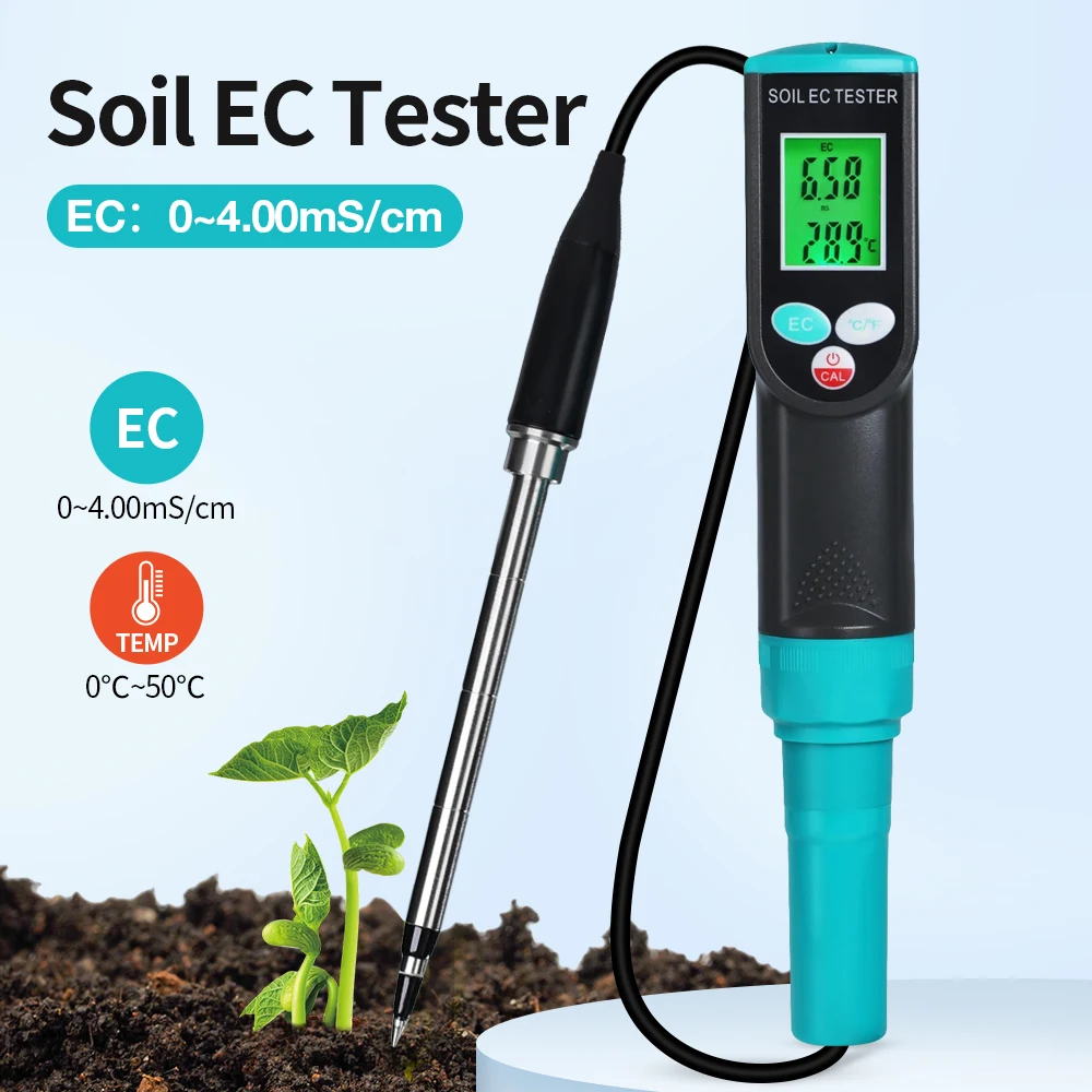 Medidor EC de suelo portátil Analizador de suelo de alta precisión 2 en 1 Detector de temperatura y EC del suelo Pantalla LCD Probador de suelo para plantas de flores