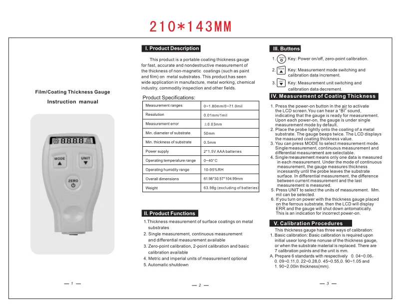 Rango de medición: 0 ~ 1,80mm/0 ~ 71.0mil