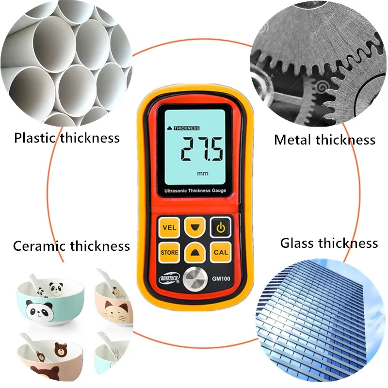 Medidor de espesor ultrasónico Digital GM100, medidor de velocidad de sonido de voz de 1,2 ~ 225mm, 1000-9999 m/s, instrumentos de medición de vidrio metálico