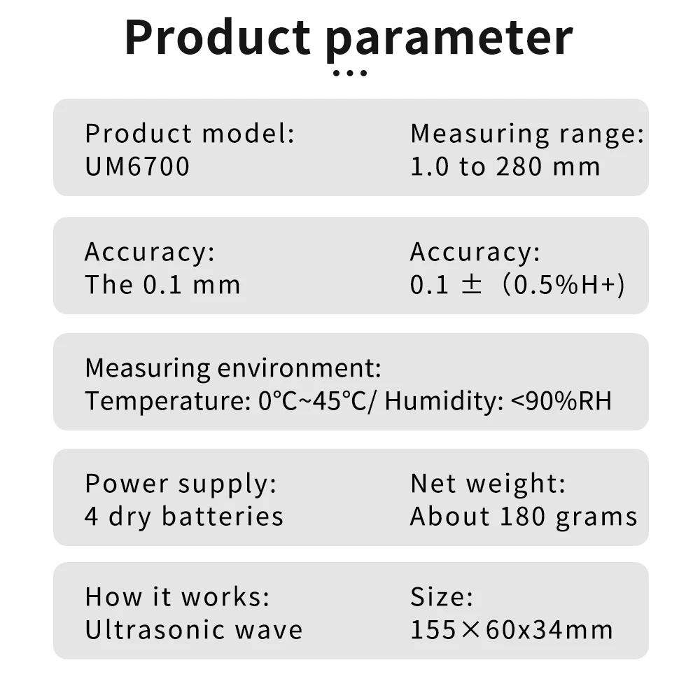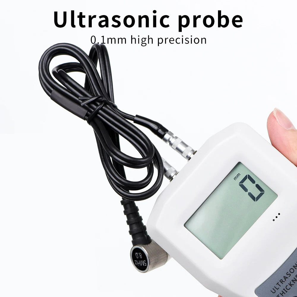 Medidor de espesor ultrasónico con pantalla LCD, probador de espesor de sonda ultrasónica de precisión de 1-280mm para Metal, plástico, tubería de PVC y vidrio