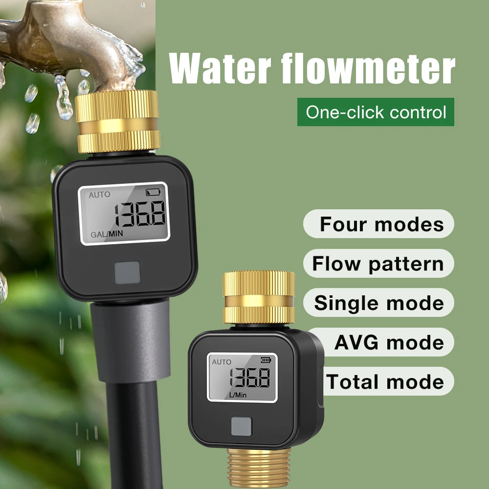 Medidor de flujo de agua de salida de entrada de latón Medidor de flujo de agua LCD Precisión Medida el consumo de agua con flujo único AVG Total 4 modos