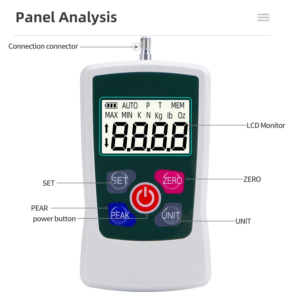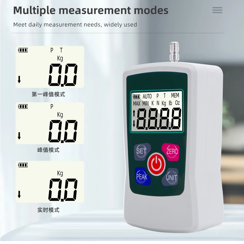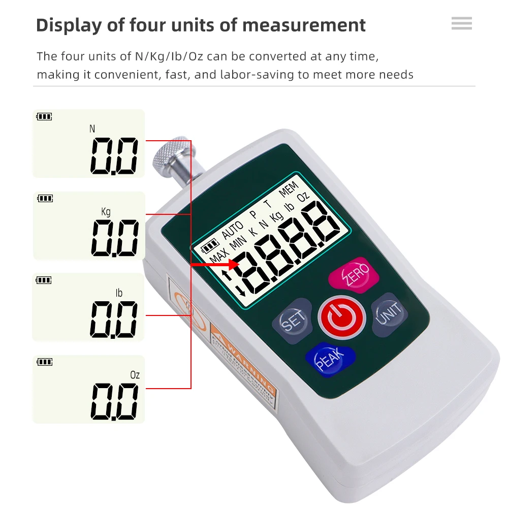 Medidor de fuerza Digital 100N/500N, dinamómetro portátil, 4 unidades, Oz Lb N KG, máquina enil, instrumento de medición de empuje de tracción