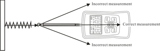8.2 Sujete firmemente el medidor de fuerza push-pull o instale el medidor de fuerza push-pull en una máquina de prueba adecuada para realizar pruebas.Durante la prueba, alinee la fuerza probada con la varilla de empuje del medidor de fuerza de empuje-pull para medir el valor de carga preciso.