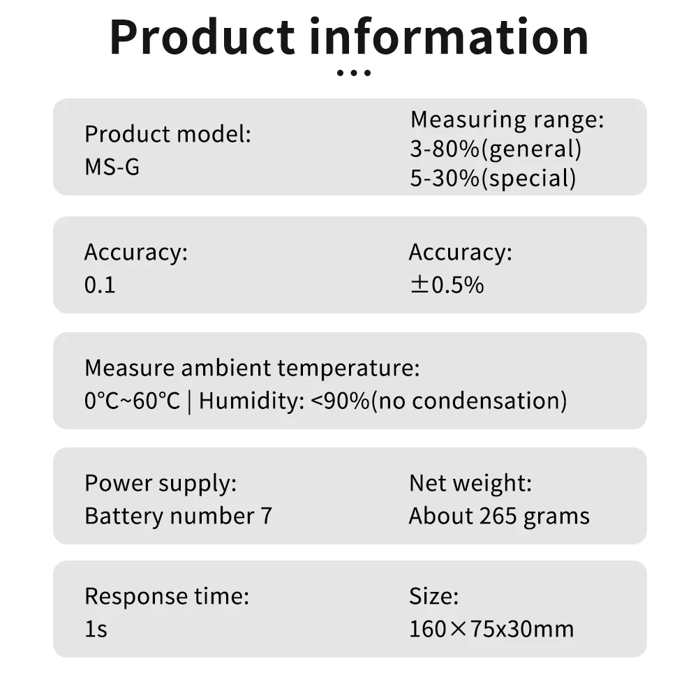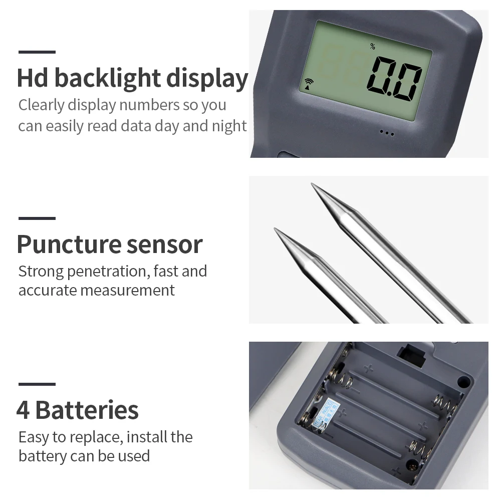 * Es portátil, compacto, fácil de usar y las lecturas de medición de humedad son instantáneas.